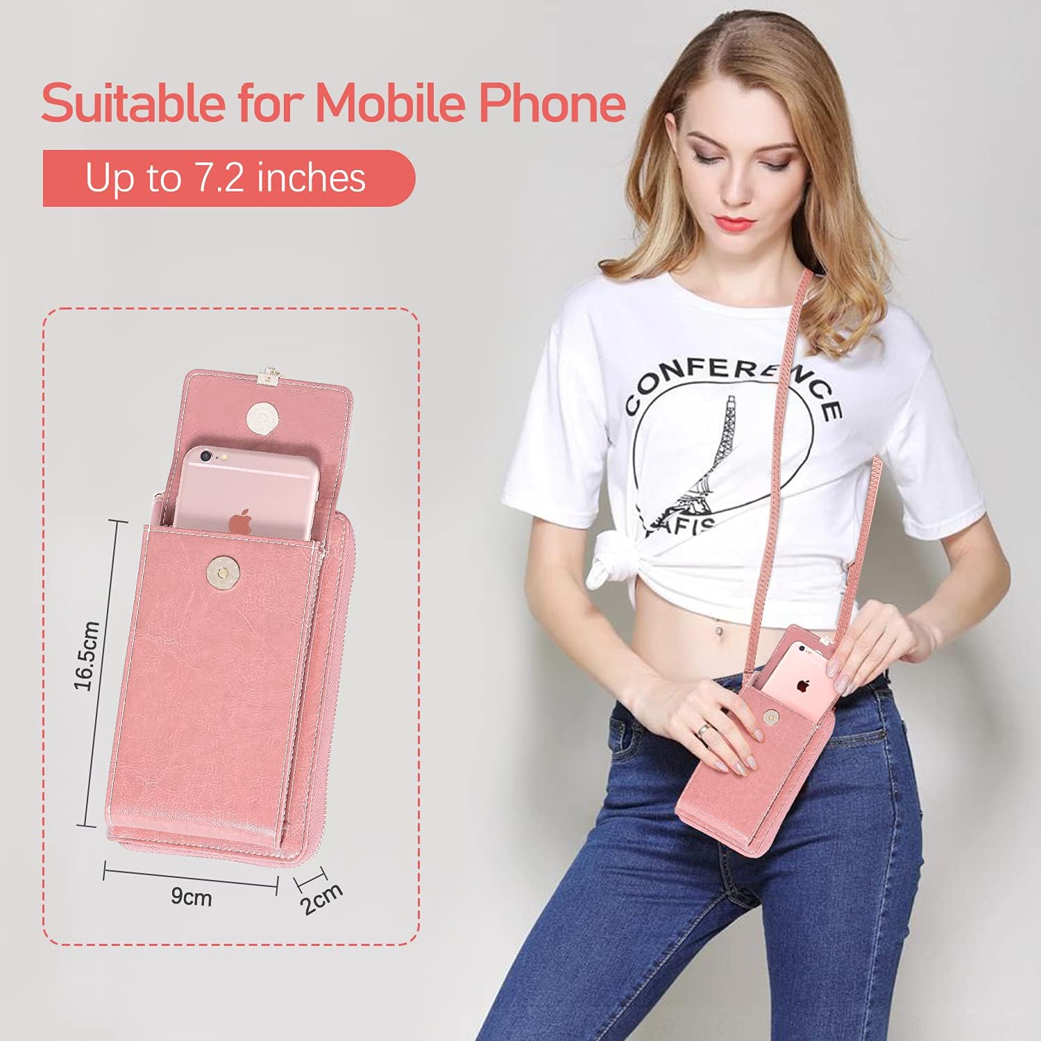 - 【Handytasche Mit Geldbörse Zum Umhängen】Die Vorderseite der Brieftasche ist eine 7,2-Zoll-Mobilfunktasche, die mit einem magnetischen Schnappverschluss zum schnellen Öffnen und Schliessen ausgestattet ist. Im Inneren des Portemonnaies befinden