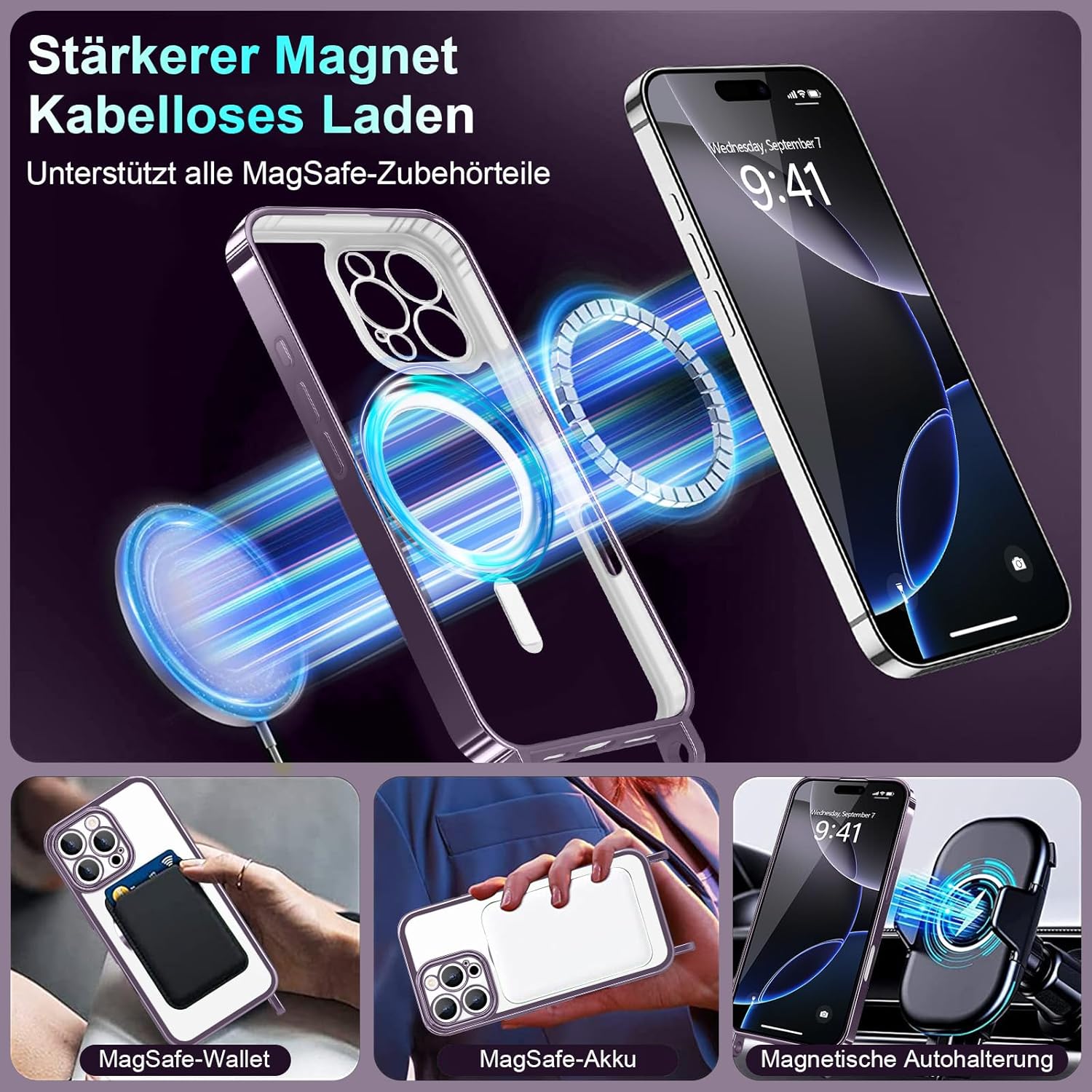 - 【Kompatibilität】Die hülle mit Umhängen Kordel Abnehmbar wurde speziell für iPhone 16 Pro Max entwickelt. Wählen Sie diese Handyhülle, behalten Sie das Handy jederzeit im Blick und haben Sie keine Angst, es zu finden.