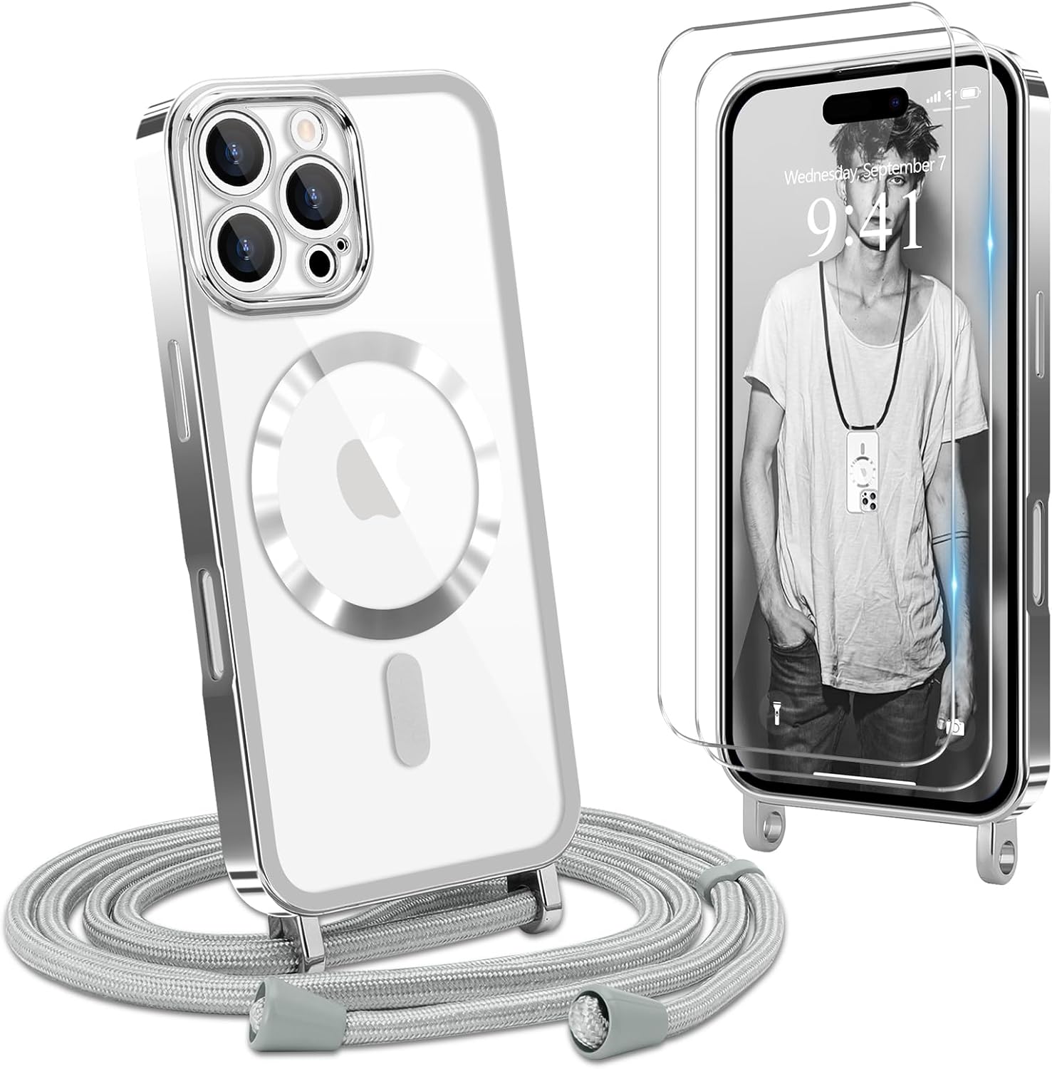 - 【Handykette iPhone 16 Pro Max Handyhülle】Die Handykette hat eine Kordel von ca. 150 cm. Das Band kann in der Länge verstellt werden,so dass Sie selbst entscheiden können wie Sie Ihr Handy tragen wollen.Hoher Tragekomfort der Umhängehülle durch