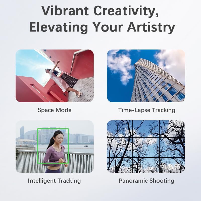- Beeindruckende Effekte freischalten - 360° uneingeschränkte Rotation, verschiedene Follow-Modi, intelligenter Tracking-Modus und vieles mehr - mit verschiedenen Aufnahmemodi können selbst Anfänger professionelle Videoeffekte erzielen.