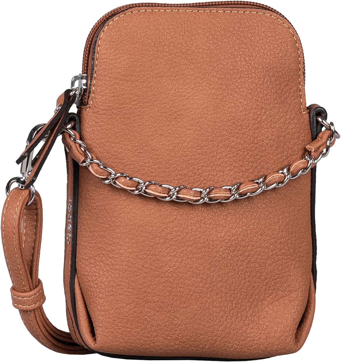 PRODUKTBESCHREIBUNGEN Das Design der Gruppe VALENTINE besticht durch das Zusammenspiel aus weichem, natürlich genarbtem Lederimitat und soften Shapes. Die hochwertige, mit Kunstleder durchzogene Gliederkette setzt einen gelungenen Akzent. Hochformatige Smartphone-Tasche mit Reissverschlussöffnung, 1 verstellbarer Schulterriemen.