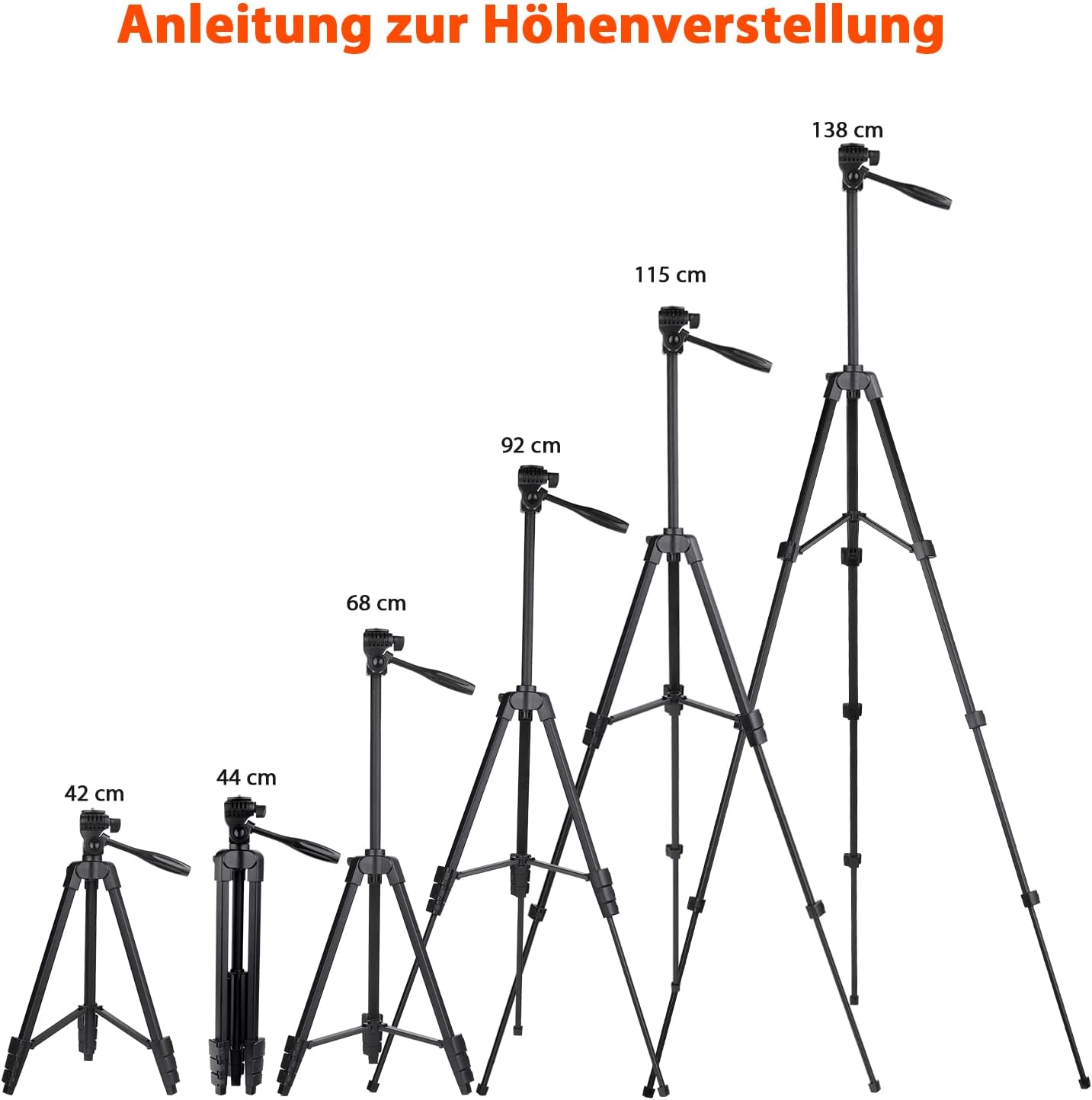 - 【Erweiterbar auf 142 cm und 360 ° -Drehung】 Es kann von 42 cm auf 138 cm erweitert werden, kombiniert mit einer 360 ° -Drehung, um den besten und schönsten Aufnahmewinkel für Aufnahme oder Video zu finden!