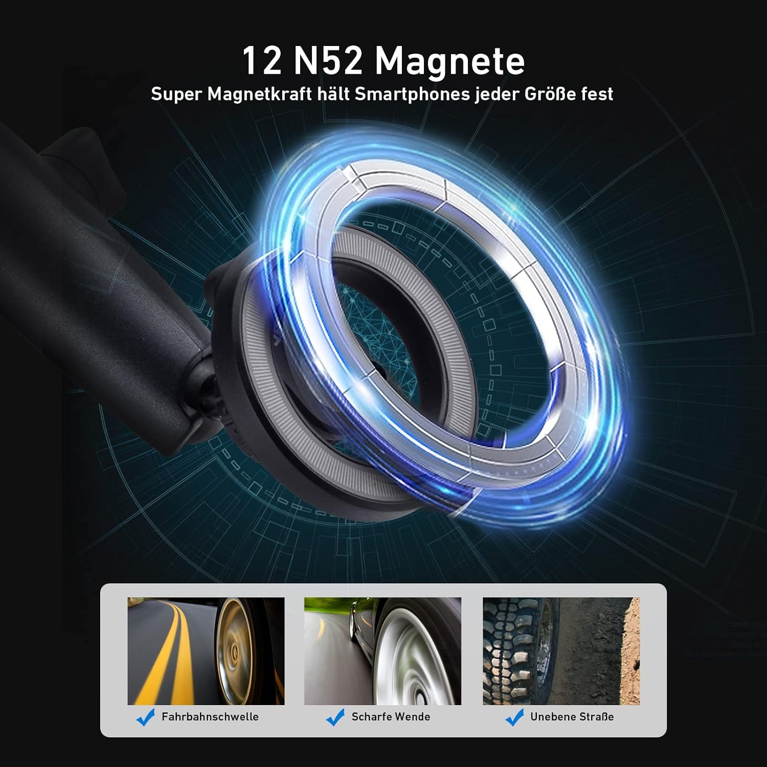 - 【Super Magnetkraft】Diese Auto-Handyhalterung hat 12pcs stärkste N52 Magnete eingebaut, die Magnetkraft ist viel stärker als andere Magnet-Handyhalterungen auf dem Markt. Die Telefonhalterung für das Auto bietet grossen Magnetismus, um Ihr Telefon