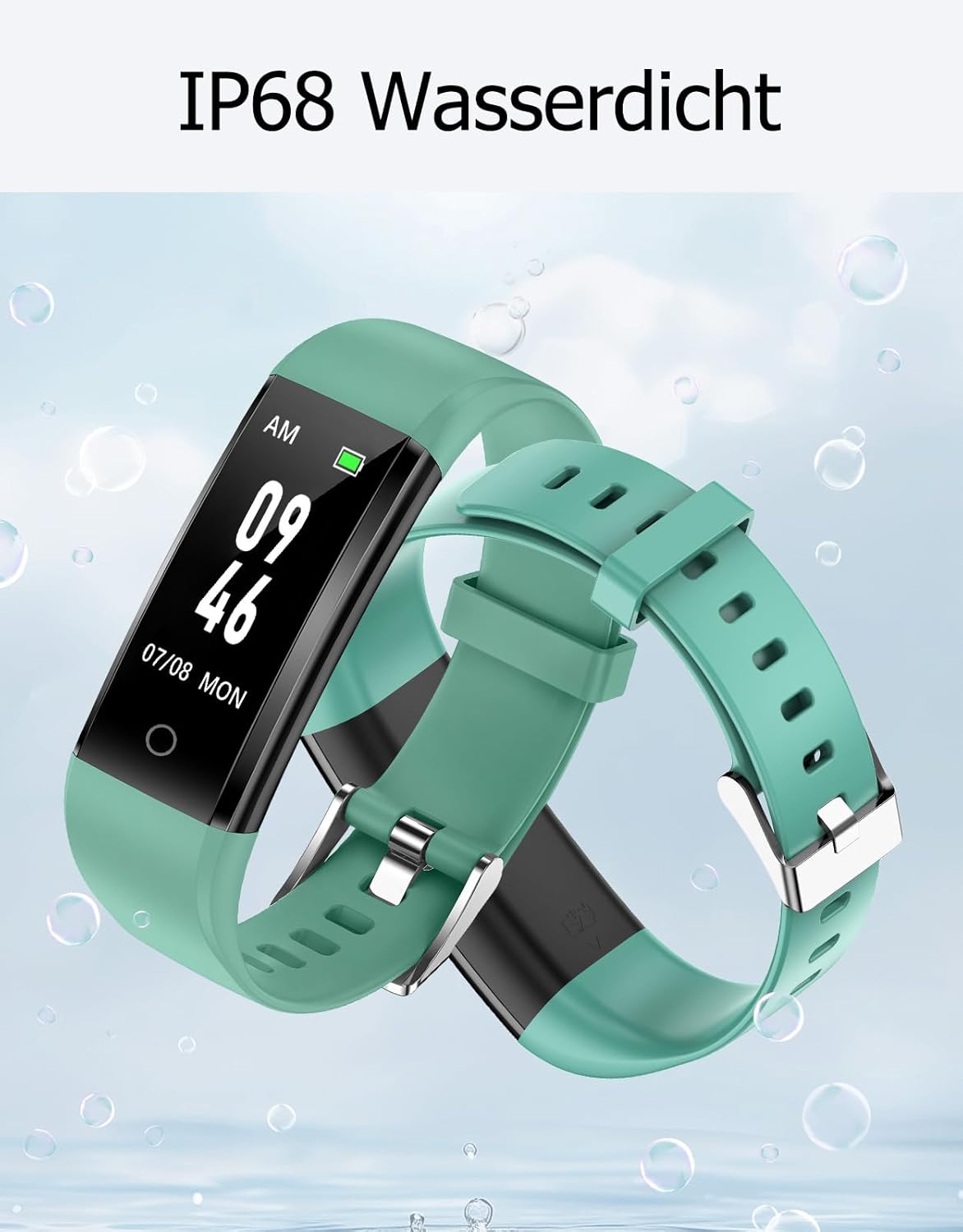 - IP68-Wasserdichtigkeit-- Dank der IP68-Wasserdichtigkeit können Sie den Fitness-Tracker auch beim Händewaschen und Schwimmen tragen. Bitte beachten Sie, dass die Fitnessuhr nicht gegen heisses Wasser und Meerwasser beständig ist.