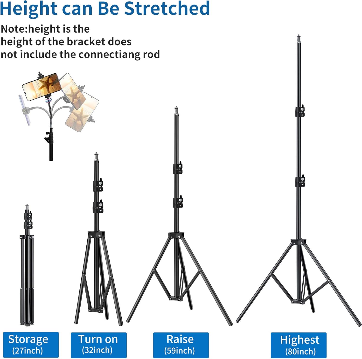 - Tragbares und flexibles Stativ für Live-Videotelefone, kann von 69,5 bis 17,8 cm eingestellt werden, Nettogewicht 2 kg.