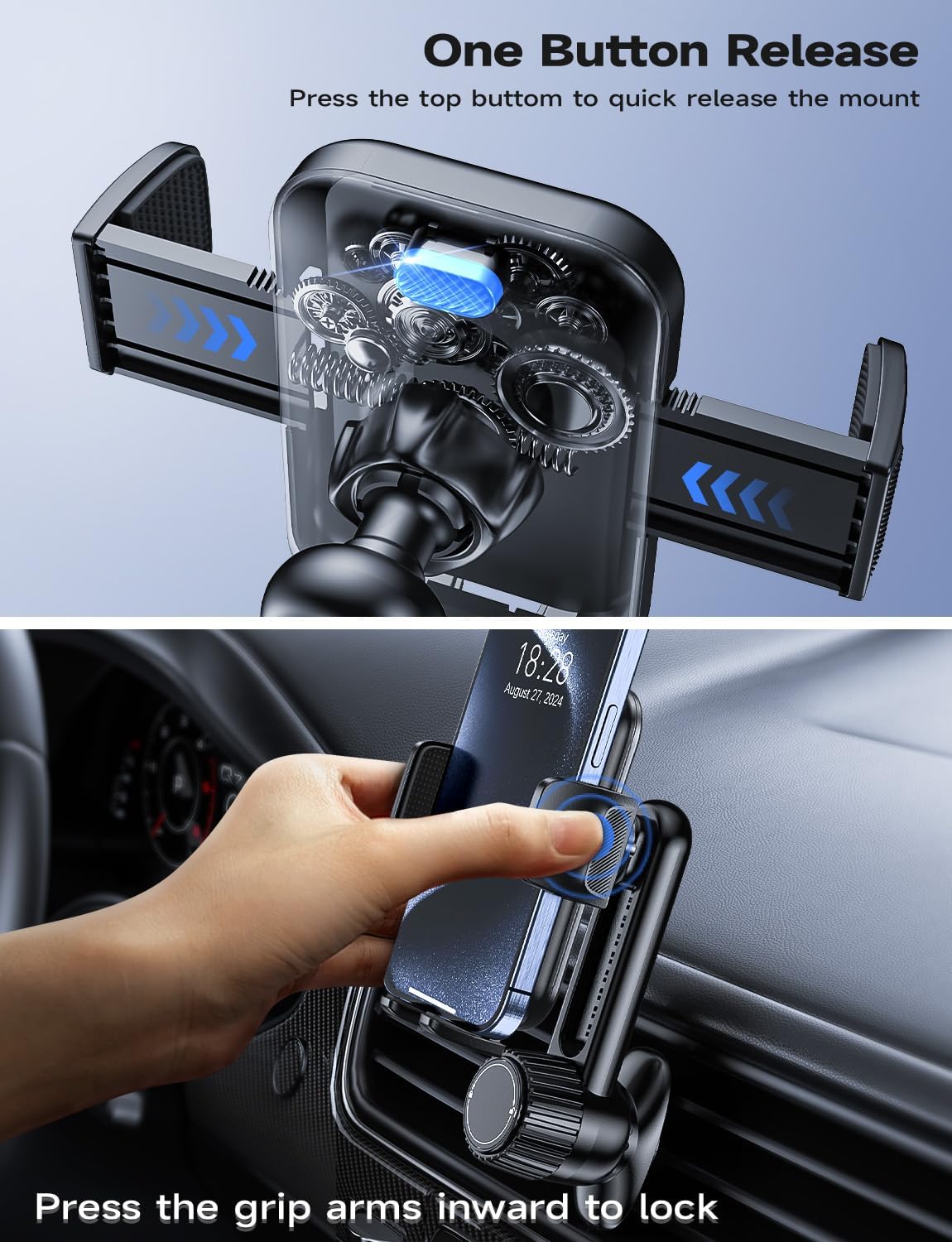 - 【2023 Upgrade Einhandbedienung】 Die Holdersafe Kfz-Handyhalterung, speziell für das iPhone und andere Mobiltelefone entwickelt, verfügt über eine innovative Struktur, die eine einfache Einhandbedienung und schnelle Installation ermöglicht. Sie