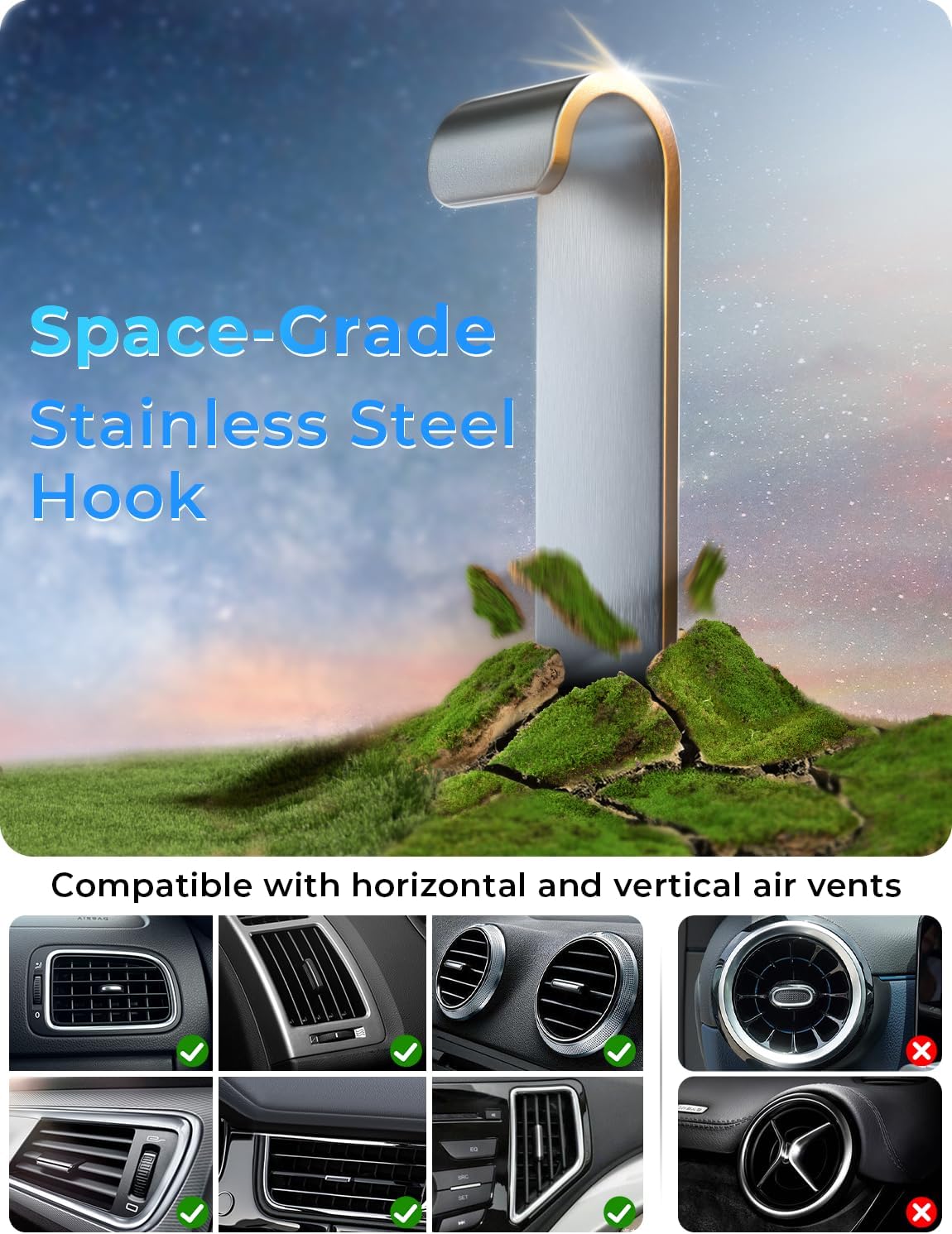 - 【Schützt die Auto-Lüftung】Dieser Auto-Handyhalter ist mit einem Edelstahlhaken ausgestattet, der eine maximale Ausdehnung von 35 mm hat. Die Kontaktfläche zwischen der Basis und dem Lüftungsschlitz ist mit Gummi versehen, um deinen
