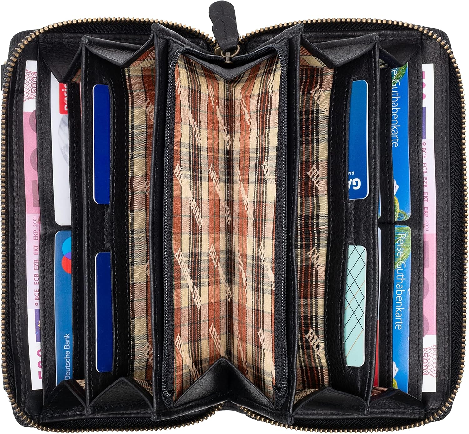 - Hochwertiges Material: Die Brieftasche besteht aus 100 % echtem Leder für Langlebigkeit. Breiter Stauraum: Die Geldbörse aus echtem Leder verfügt über mehrere Staufächer, Kartenfächer, Reissverschlussfächer und eine transparente Tasche, sodass Sie