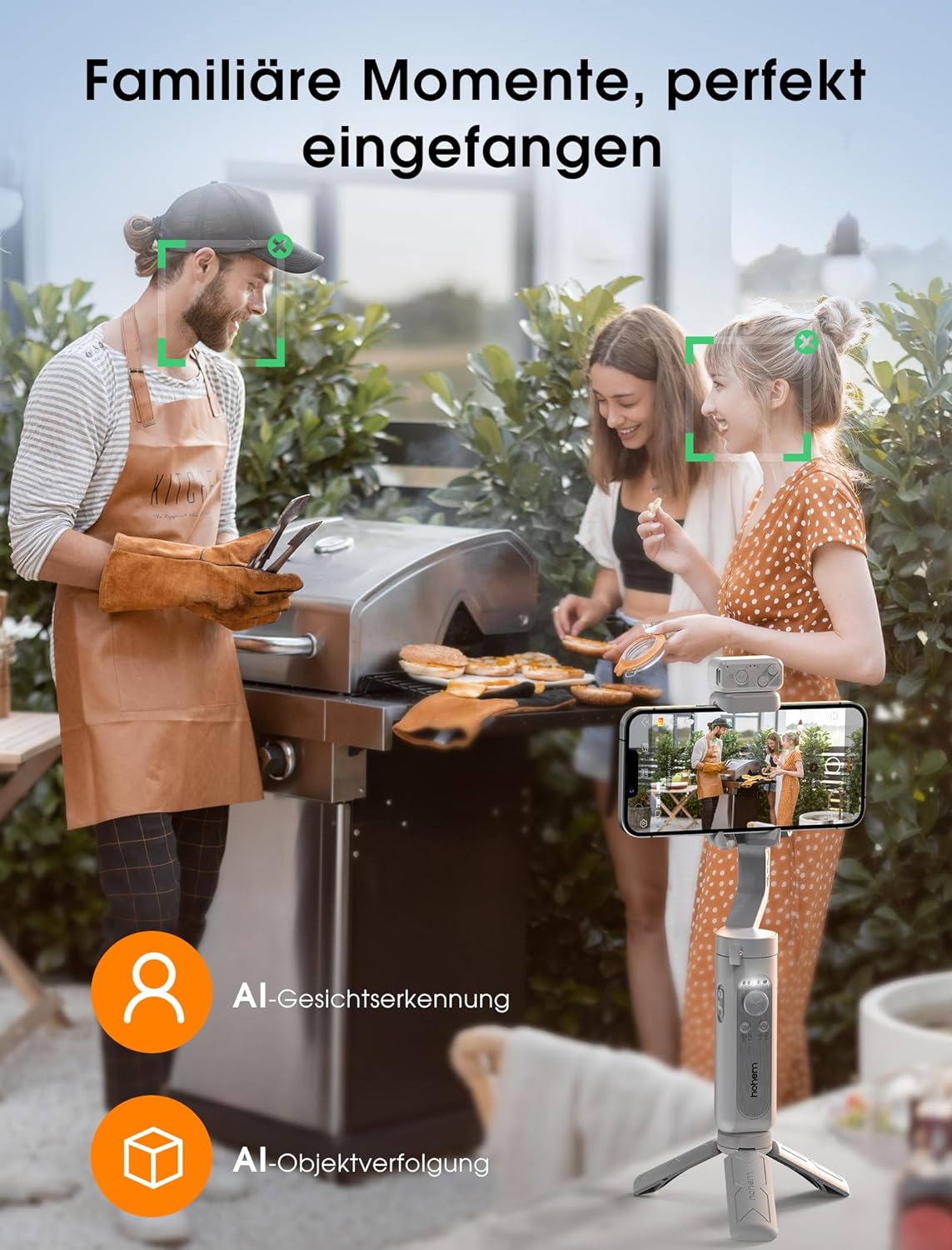 - [Gesichts und Objektverfolgung] Mit der Hohem Joy App kannst du mühelos jeden Moment einfangen, ob du das Fussballspiel deines Kindes filmst oder professionell Inhalte für dein Unternehmen erstellst. Unsere Gesichts- und Objektverfolgung nutzt