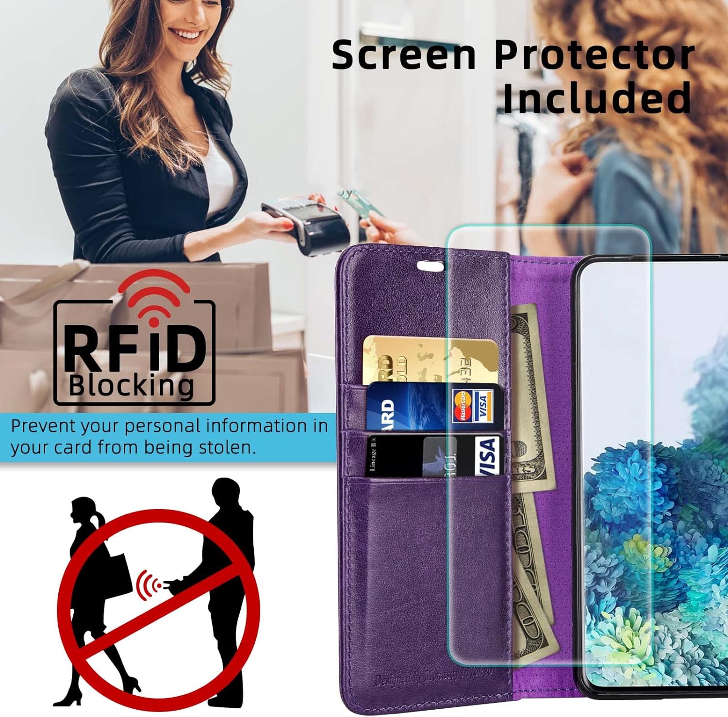 - 【Mehr Bequemer】1. Das Flip Case kann als Standfunktion- ideal zum Ansehen von Videos, Anzeigen oder Lesen. 2. Bietet 3 Kartenfach für Kreditkarten, Ausweise, Visitenkarten und eine Seitentasche für Bargeld, Quittungen und Rechnungen.