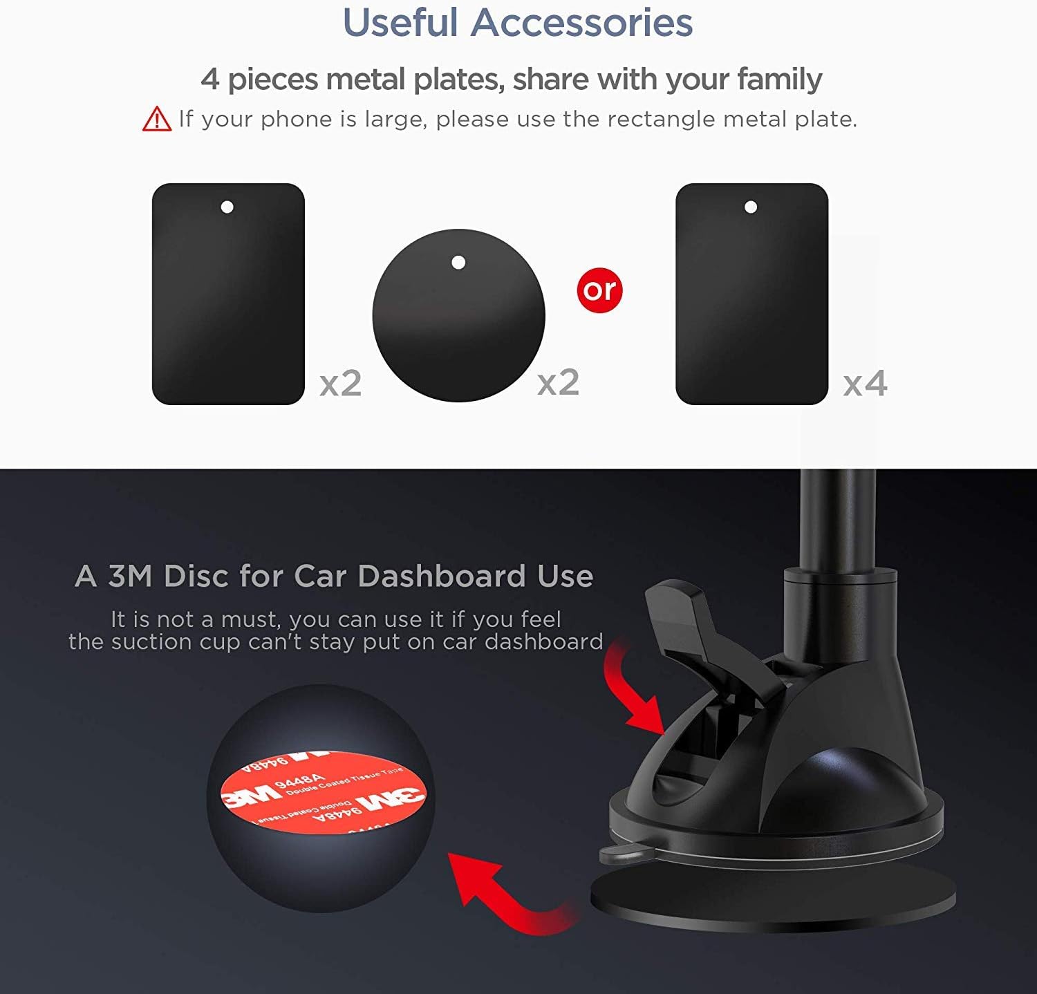 - 【Upgrade Magnet】Mit 4 eingebauten N45 Magneten und 4 mitgelieferten Metallplatten verfügt ipow Handyhalterung über verstärkerte Magnetkraft und lange Anwendungsdauer, sodass schweres oder grosses Handy oder Navi-Gerät bombenfest und sicher bei