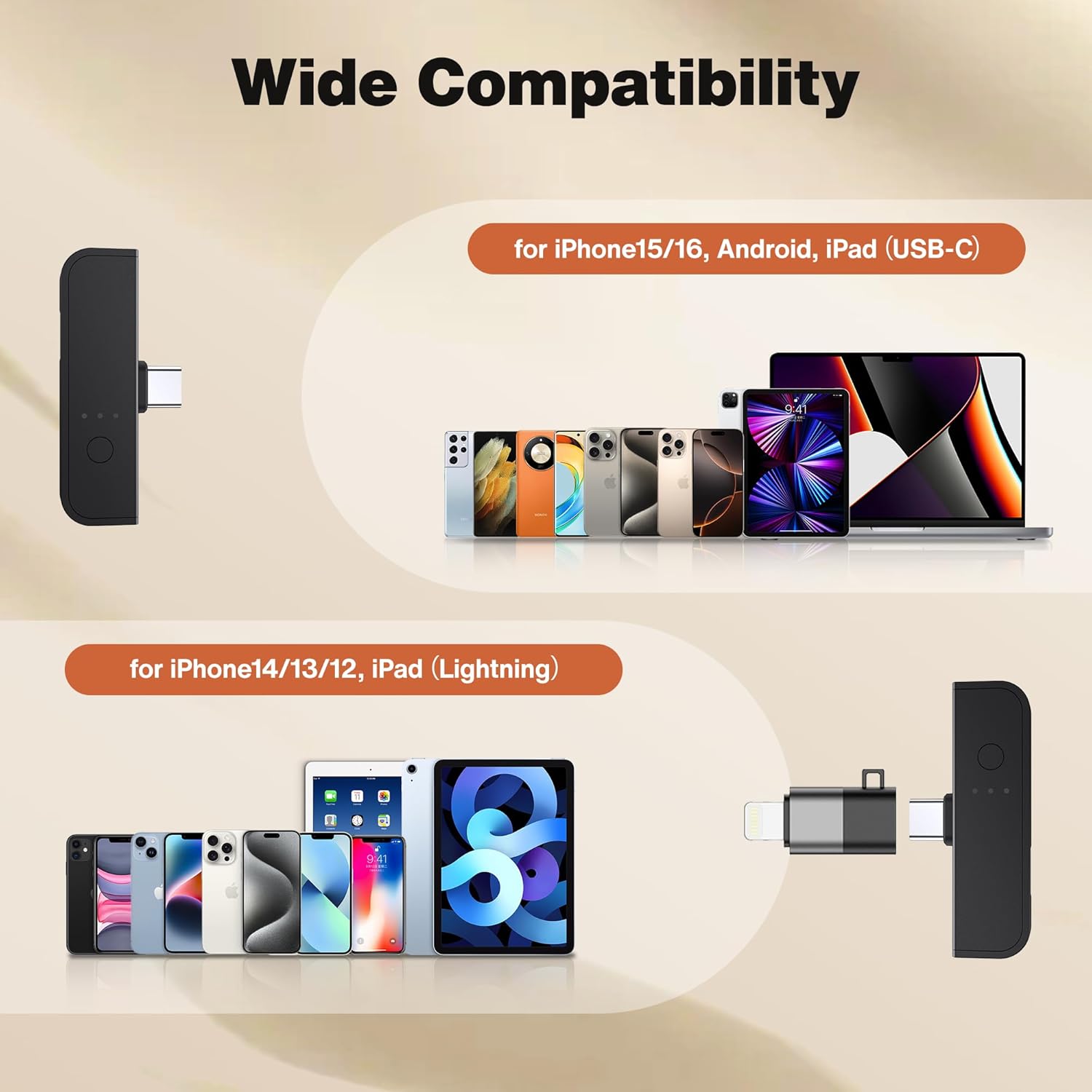 - [Plug-and-Play für iPhone: Stecken/Aktivieren/Aufnehmen] Einfach den Lightning/USB-C-Empfänger ins iPhone stecken, Mikrofon einschalten. Die Aufnahme startet sofort ohne App oder Einstellungen. Perfekt für TikTok, YouTube, Zoom und ähnliche
