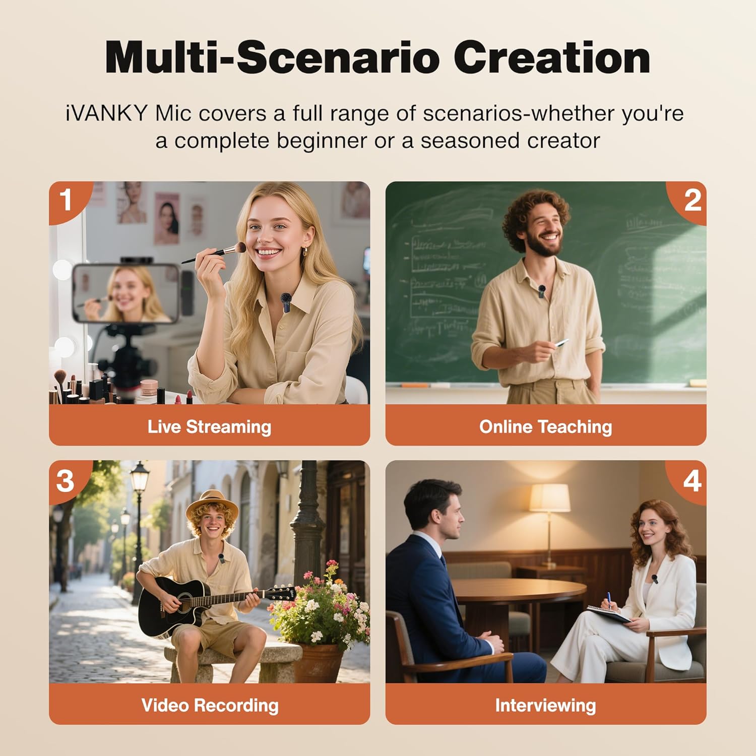 - [Studio-Sound für iPhone-Videoaufnahmen] Dieses Lavalier-Mikrofon liefert Audio in Studio-Qualität mit verbessertem Hall und KI-basierter Rauschunterdrückung. Es nimmt Stimmen deutlich klarer auf als das iPhone-Eingabemikrofon und blockt 90% der