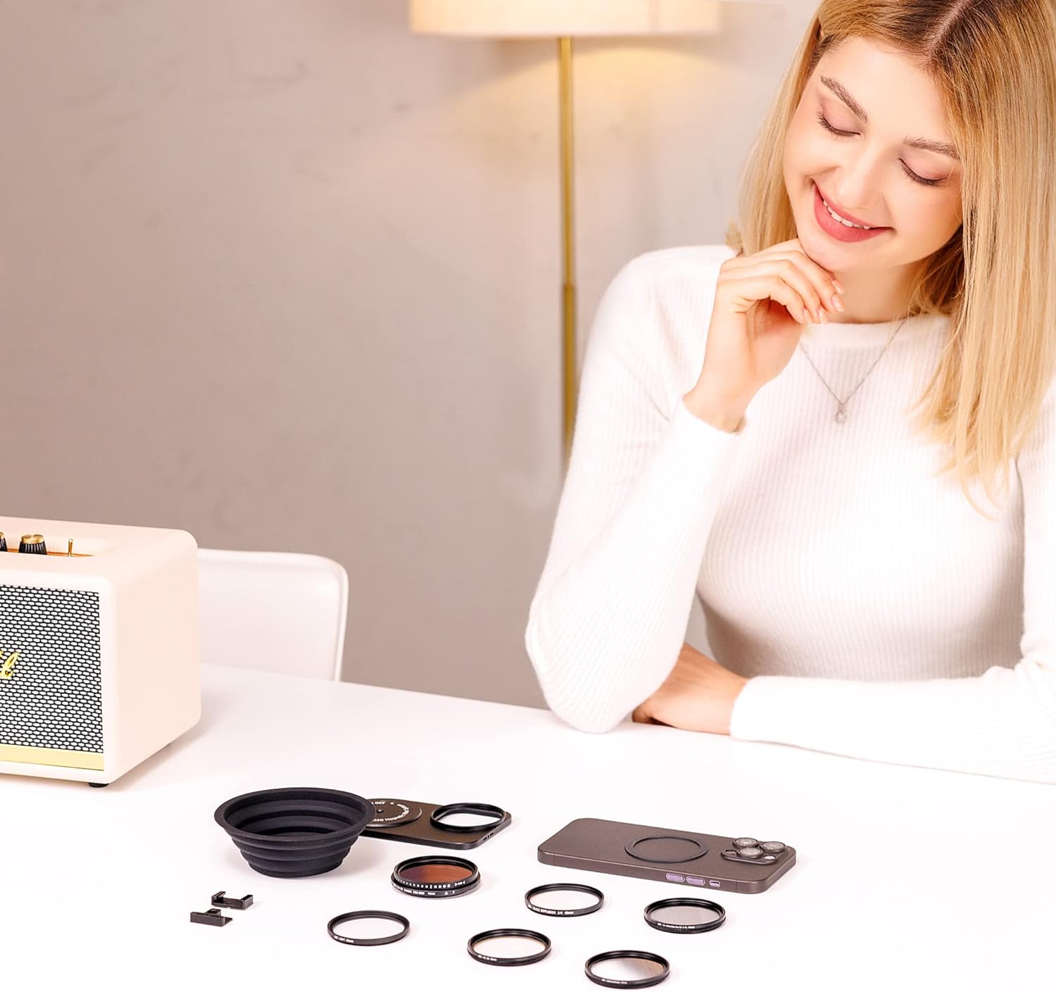 - 【Magnetisches Filterhalterungssystem】Die Filterhalterung ist kompatibel mit jedem 49-mm-Filter – erweitert die Auswahl an Filtern. Die Magnetfilterhalterung wird empfohlen für die Verwendung mit der Handyhülle (im Lieferumfang enthalten). Die