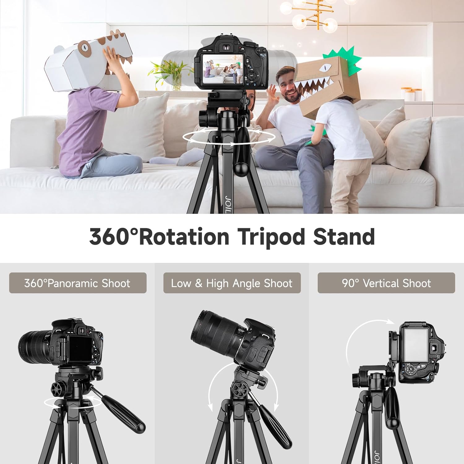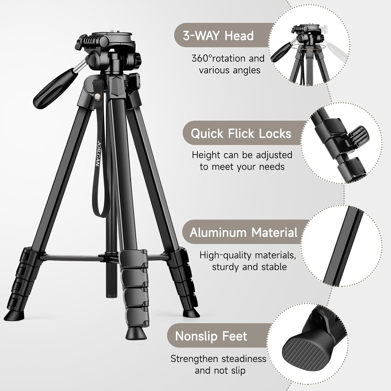 - 【Abnehmbarer 360-Panorama-3-Wege-Kopf】Das Kamerastativ ist mit einem leichtgängigen 3-Wege-Schwenkkopf ausgestattet, der alle Aufnahmeanforderungen erfüllen kann. Der lange Griff und die individuellen Verriegelungstasten ermöglichen es Ihnen, in