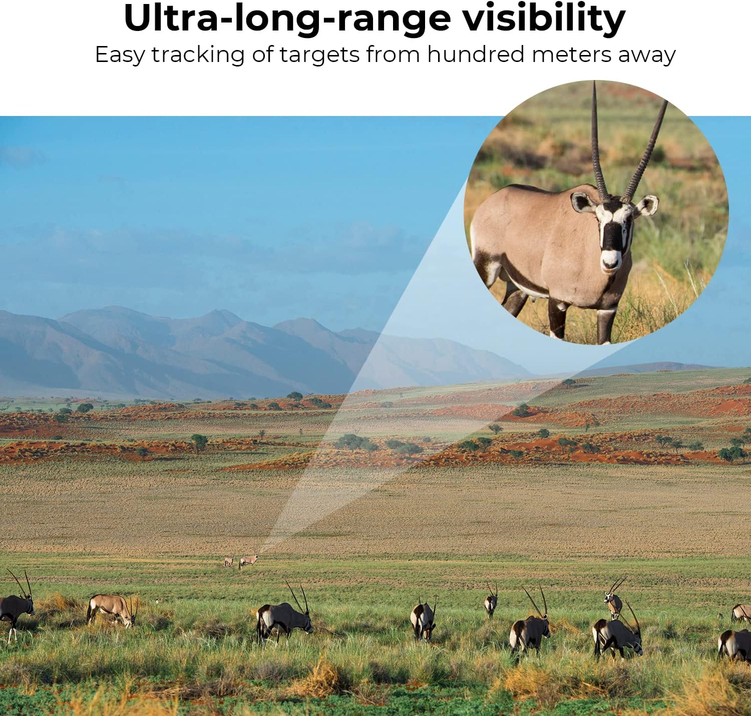 - BAK4-Prisma und Mehrschichtbeschichtung: Sowohl das Okular als auch die Objektivlinse verwenden einen hochwertigen volloptischen BAK4-Prisma + FMC-Breitband-Grünfilm mit einer Lichtdurchlässigkeit von bis zu 99%, mit dem Sie das Ziel in High Definition