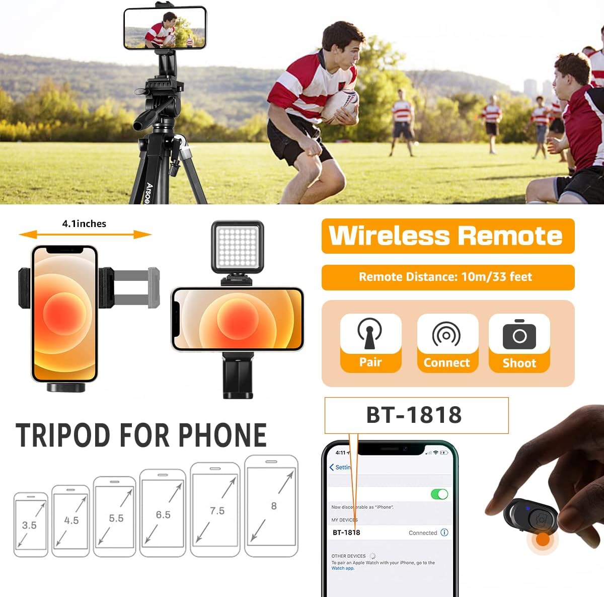 - ✅【Paketliste & exzellenter Service】: Im Paket erhalten Sie: 1 x Kamerastativ, 1 x Tragetasche, 1 x kabellose Fernbedienung, 1 x Telefonhalter, 1 x Bedienungsanleitung. Wir bieten eine einjährige Garantie und kostenlosen Teileaustausch. Wenn Sie