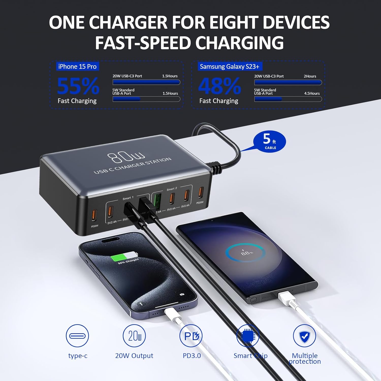 - ⚡【Überragende Sicherheit und Exzellenter Service】Der 70w ladestation usb c ist mit mehrfachem Schutz ausgestattet, um schnelles und sicheres Laden zu gewährleisten. Der aktualisierte intelligente Chip schützt Ihr Gerät vor Überstrom,