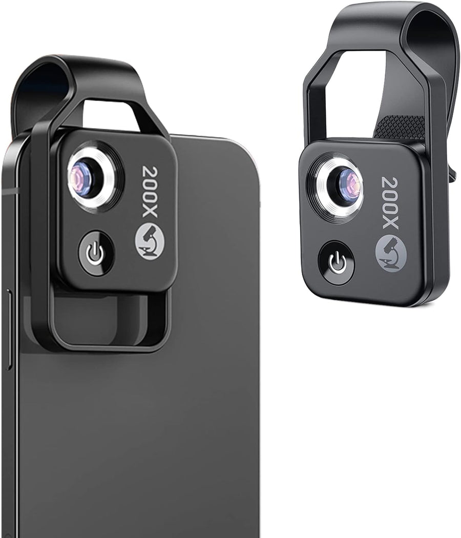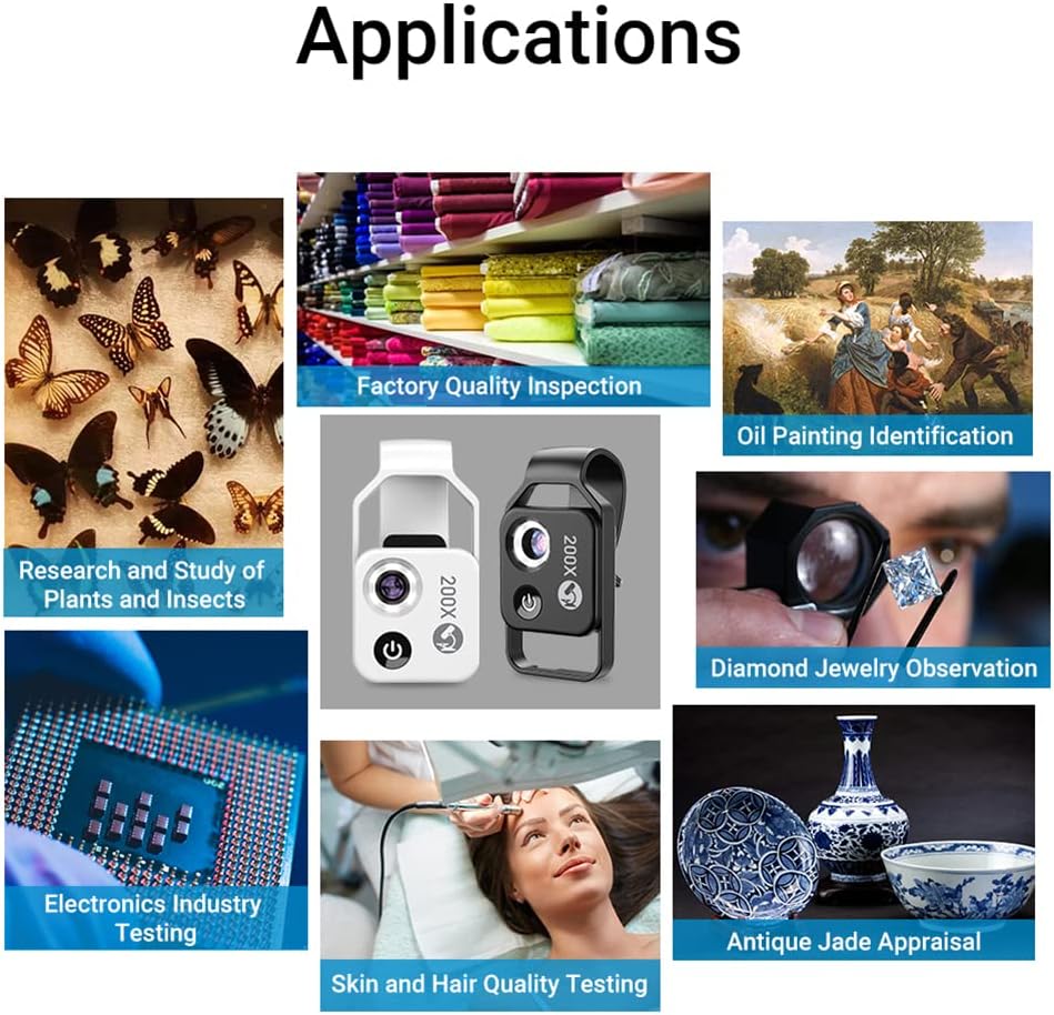 - 【Bis zu 200-fache Vergrösserung】 Das Handy-Mikroskop selbst kann das Objekt um das 20-fache vergrössern. Mit der 10-fachen Vergrösserungsfunktion des Telefons kann die Vergrösserung das 200-fache erreichen. Die beste Brennweite beträgt 6,5 bis