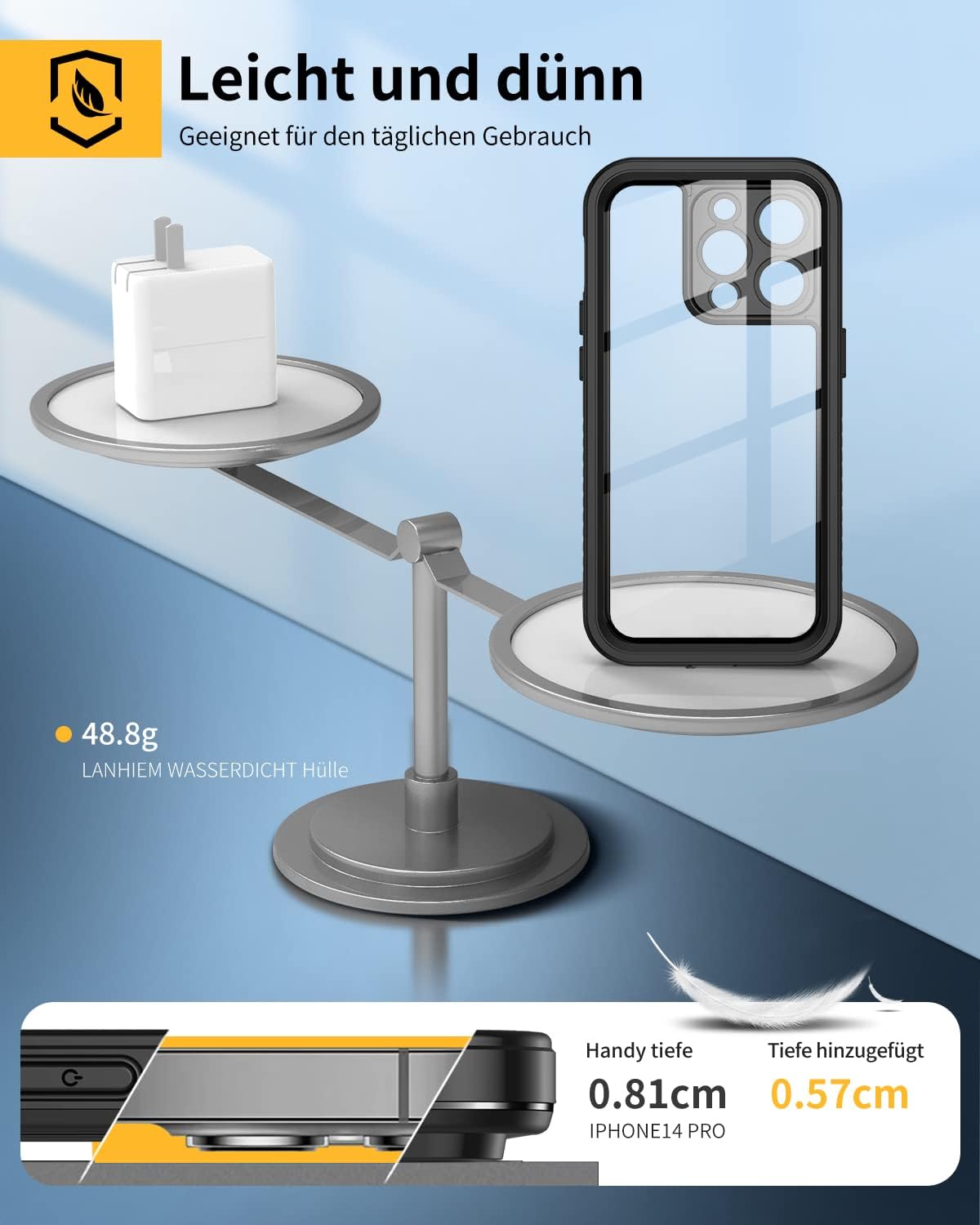 - 【IP68 Wasserdicht】Sie können Ihr iPhone 14 Pro zum Schwimmen, Tauchen, Aufnehmen von Bildern und Videos unter Wasser tragen. Sie können Ihr iPhone direkt in das Waschbecken eintauchen, wenn Sie Ihre Hände waschen, um es sauber zu halten. Es kann problemlos den täglichen Gebrauch, Sport im Freien und staubige und schmutzige Arbeitsumgebungen bewältigen! HINWEIS: Bitte muss WASSER TEST tun, um seine wasserdichte Funktion zu testen, bevor Sie den Koffer und das Telefon in das Wasser stecken.