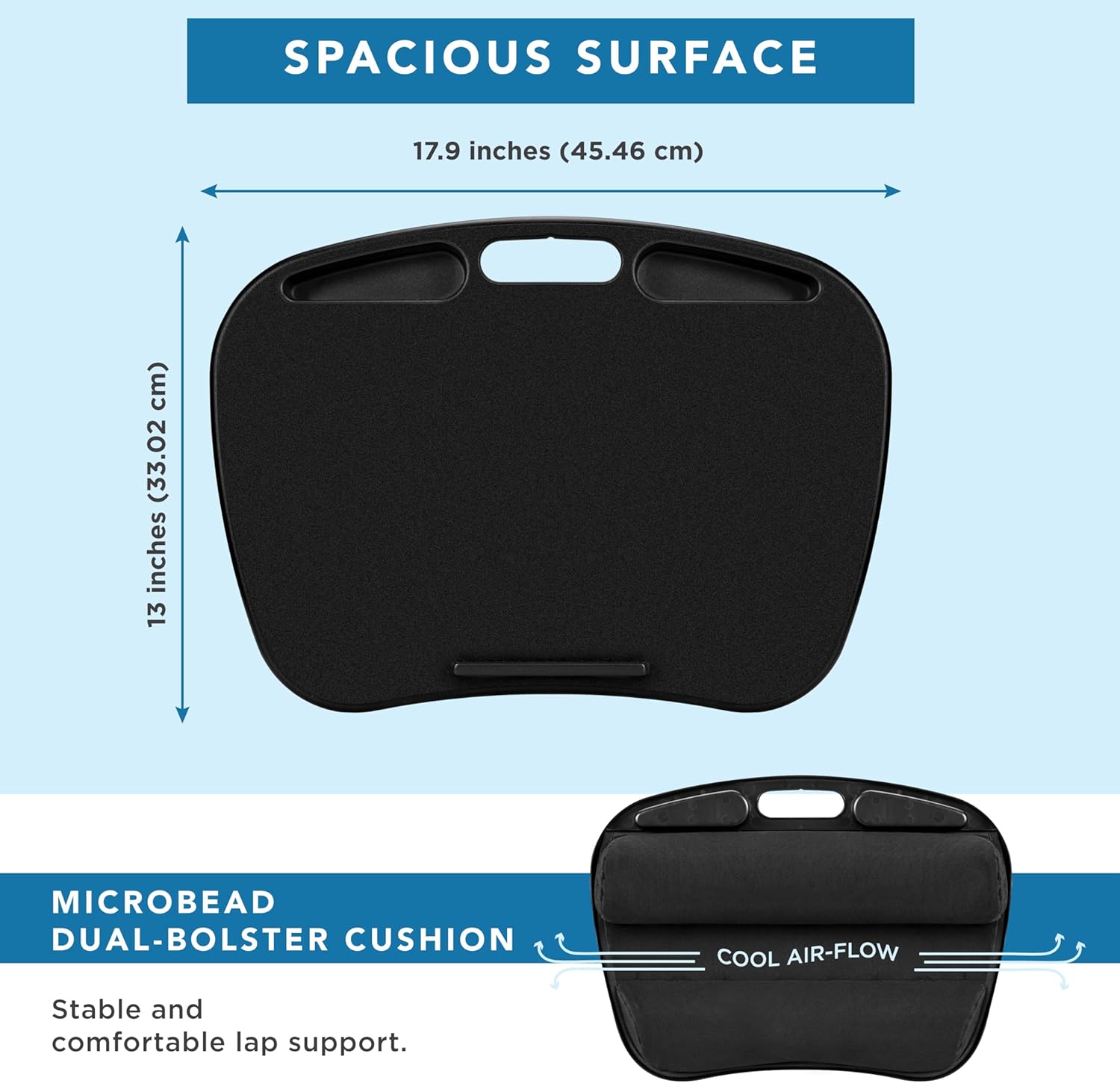- Kissen: Sie werden diesen Schossschreibtisch bei jedem Wetter dank seines innovativen Doppelkissens gerne verwenden. Der Raum zwischen den Kissen hält die Luft in Bewegung und Ihren Schoss kühl. Das Mikroperlen-Design bleibt stabil auf Ihrem Schoss und