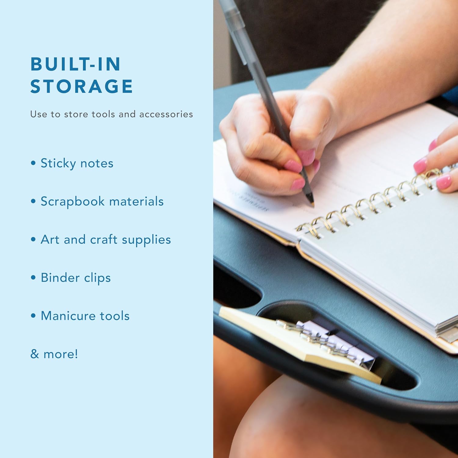 - Einfach zu verstauen: Wenn Sie Ihren Schossschreibtisch nicht verwenden, ist es einfach, ihn ausser Sichtweite zu verstauen. Sein kompaktes Design macht es einfach, auf ein Regal oder unter das Bett zu schieben. Stellen Sie es in einen Schrank oder