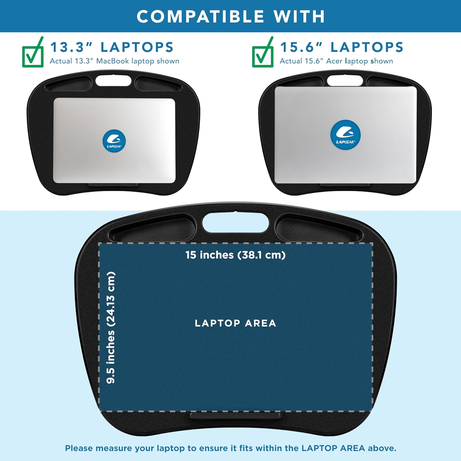 - Masse: Die Oberfläche des MyDesk ist 45,5 cm breit und 33 cm tief. Es passt für die meisten Laptops bis zu 15,6 Zoll bequem mit einem geschwungenen Design und ohne scharfe Ecken.