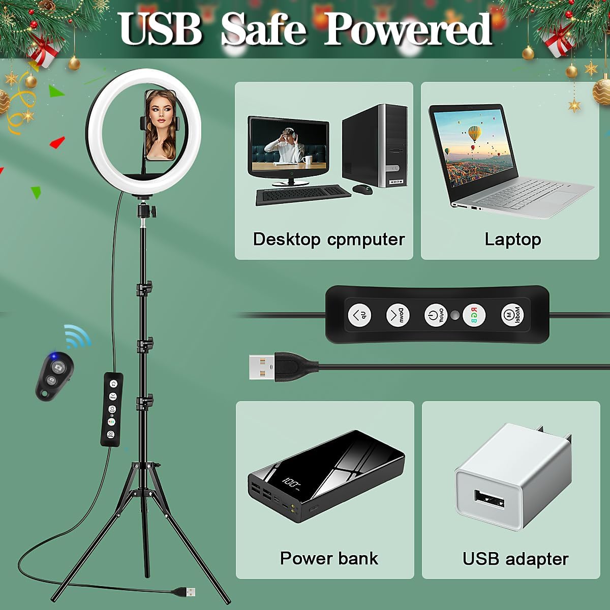 - [Fernbedienung & USB-Stromversorgung] - Ihre iOS- / Android-Smartphones können Bilder per Video aufnehmen und Videos per Fernauslöser aufnehmen (bitte verknüpfen Sie zuerst AB Shutter3). LED selfie ringlicht mit 2 m langem USB-Kabel, sehr bequem zu