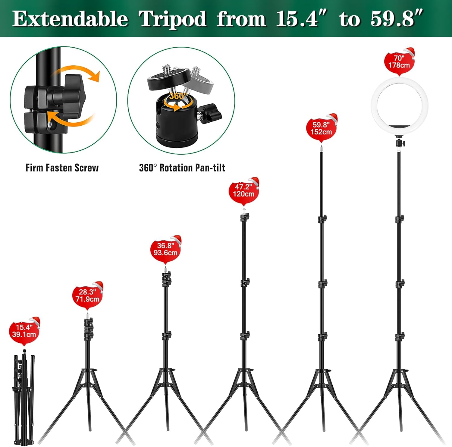 - [Zusammenklappbarer stative] - Das gross ringleuchte stativ verfügt über schnelle Klappverschlüsse und eine gewichtete Stativbasis für mehr Stabilität, damit es nicht umkippt ministativ zum stehen auf der tischplatte; Im zusammengeklappten Zustand