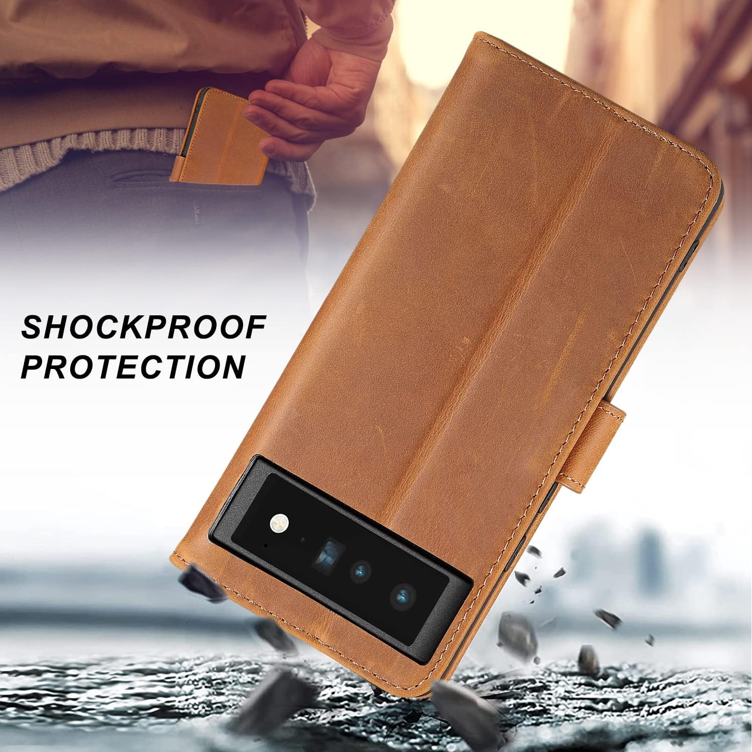 - MATERIAL: Die Google Pixel 6 Pro Ledertasche ist verarbeitet aus hochwertigem und langlebigem Rindsleder. Das Leder wird angenehmer und weicher geworden durch den Gebrauch. Die Inner-Halterung ist aus weichem TPU-Material gefertigt, bietet maximal Schutz