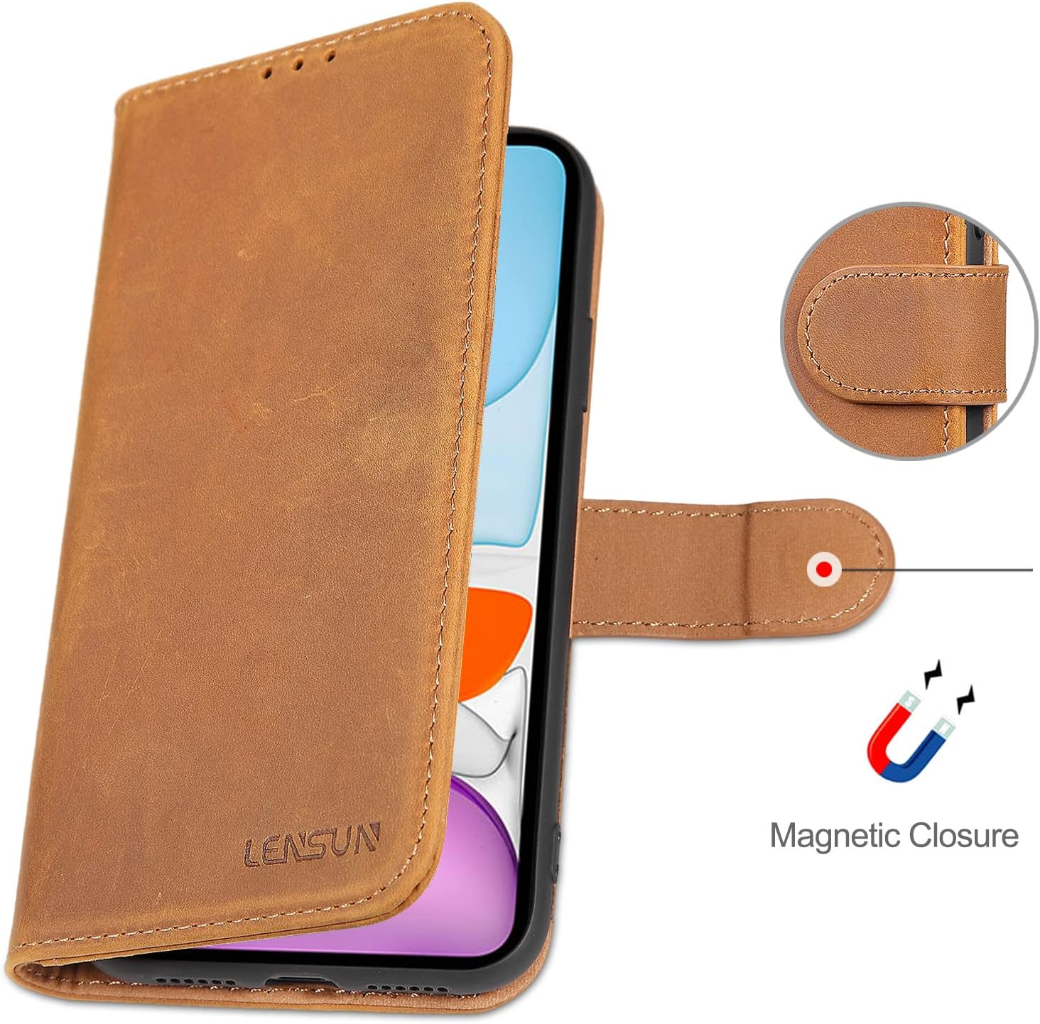 - MAGNETISCHE VERSCHLUSSLASCHE: Diese LENSUN Handy Hülle hat einen magnetischen Verschluss, damit bleibt die Hülle gut geschlossen und schützt das Handy vor versehentlichen Tropfen, Stössen und Kratzern. Das schickes Design bietet vier schöne Farben