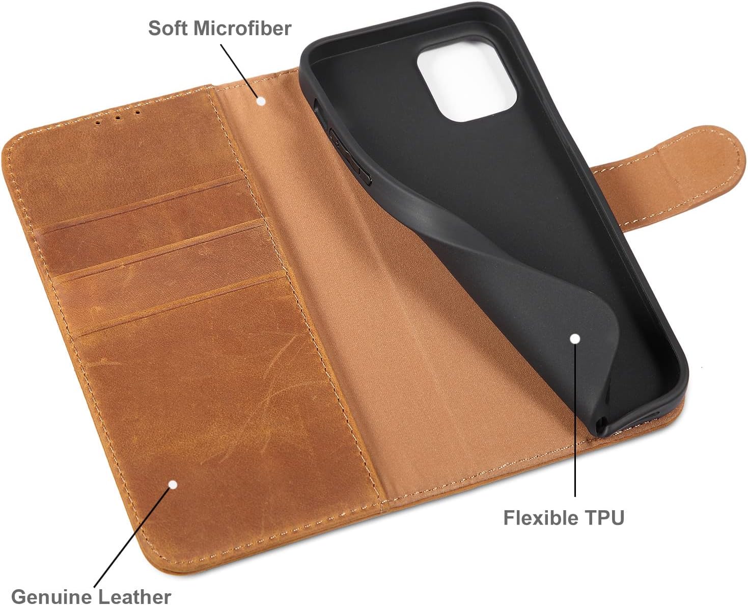 - MATERIAL: Die iPhone 12/12 Pro Ledertasche ist verarbeitet aus hochwertigem und langlebigem Rindsleder. Das Leder wird angenehmer und weicher geworden durch den Gebrauch. Die Inner-Halterung ist aus weichem TPU-Material gefertigt, bietet maximal Schutz