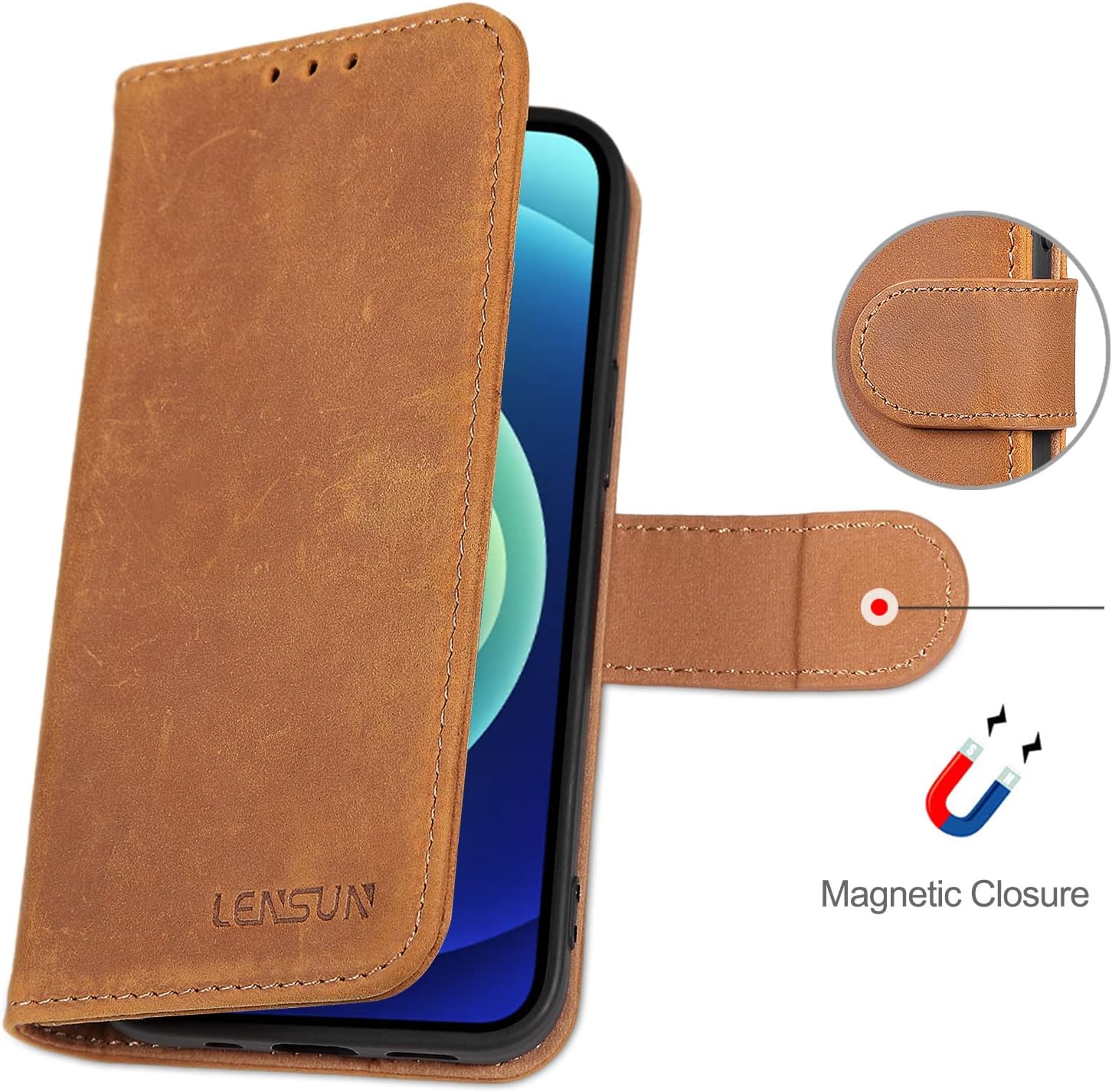 - MAGNETISCHE VERSCHLUSSLASCHE: Diese LENSUN Handy Hülle hat einen magnetischen Verschluss, damit bleibt die Hülle gut geschlossen und schützt das Handy vor versehentlichen Tropfen, Stössen und Kratzern. Das schickes Design bietet vier schöne Farben