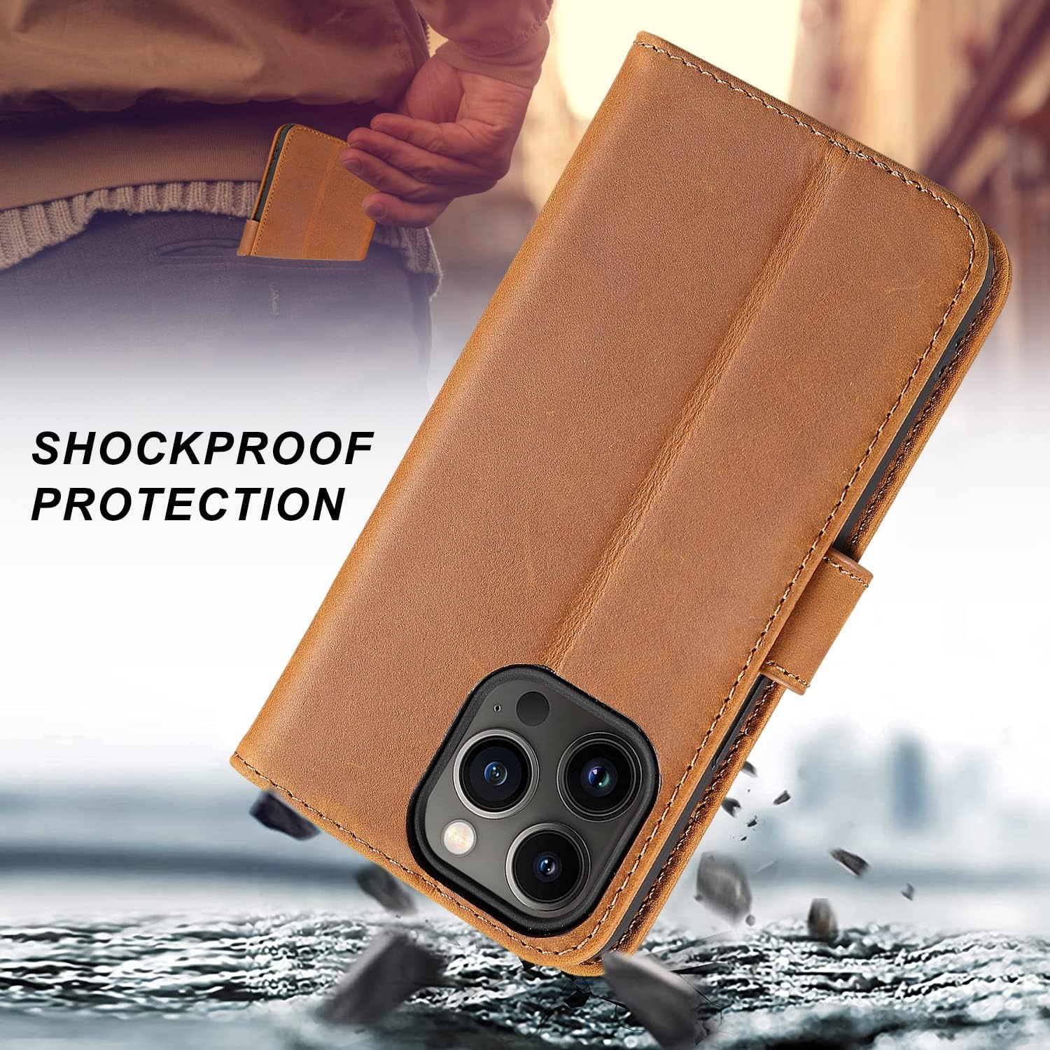 - MATERIAL: Die iPhone 13 Pro Ledertasche ist verarbeitet aus hochwertigem und langlebigem Rindsleder. Das Leder wird angenehmer und weicher geworden durch den Gebrauch. Die Inner-Halterung ist aus weichem TPU-Material gefertigt, bietet maximal Schutz und