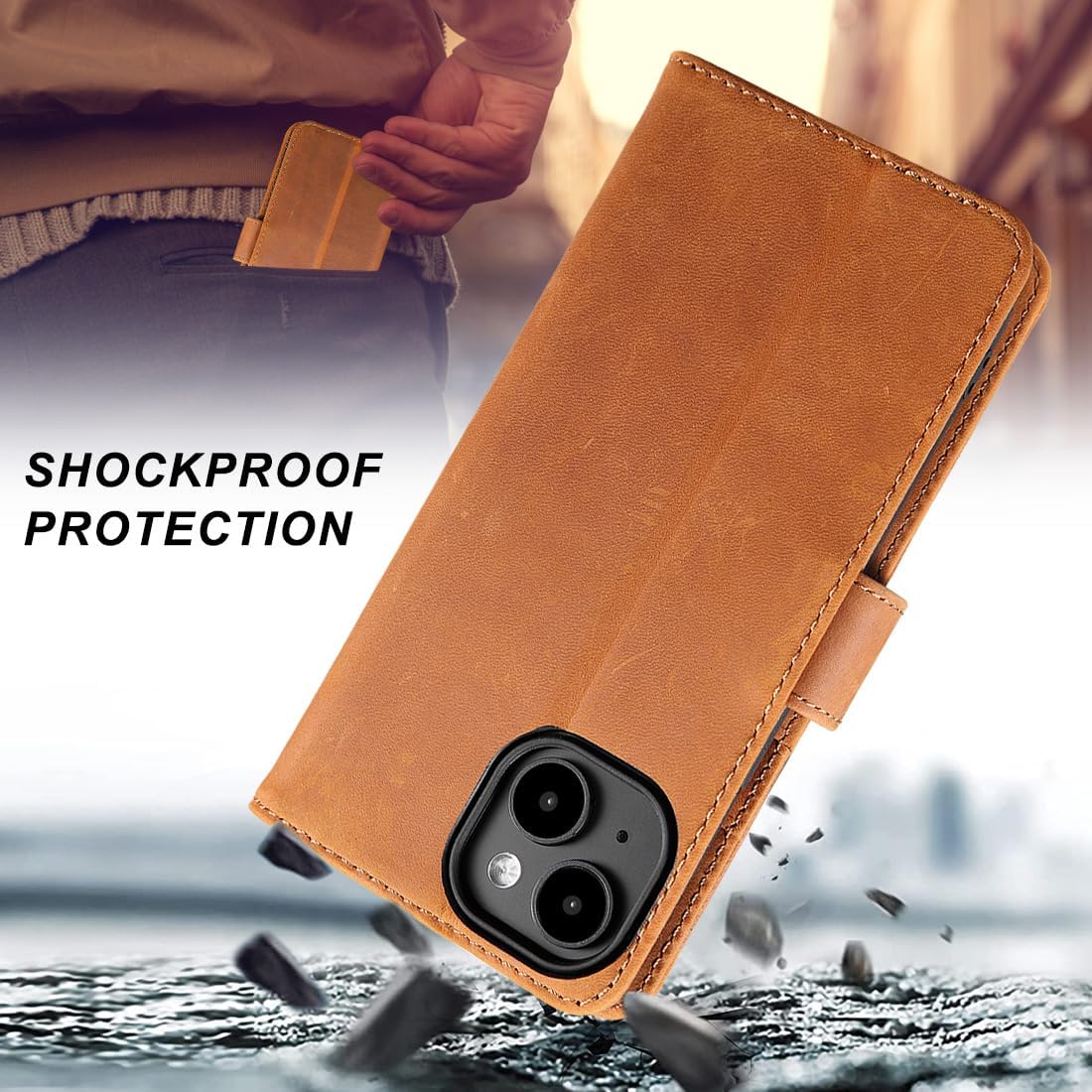 - MATERIAL: Die iPhone 15 Ledertasche ist verarbeitet aus hochwertigem und langlebigem Rindsleder. Das Leder wird angenehmer und weicher geworden durch den Gebrauch. Die Inner-Halterung ist aus weichem TPU-Material gefertigt, bietet maximal Schutz und