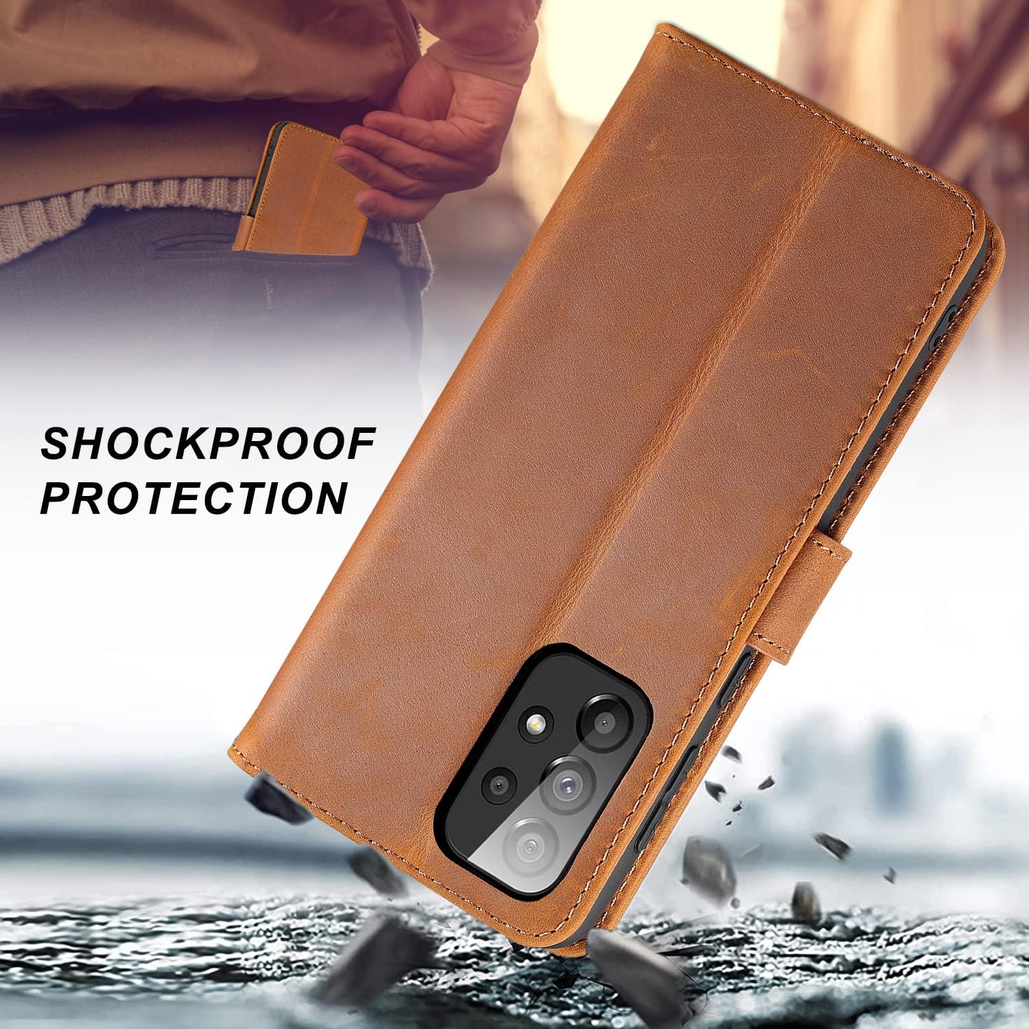 - MATERIAL: Die Samsung A33 Ledertasche ist verarbeitet aus hochwertigem und langlebigem Rindsleder. Das Leder wird angenehmer und weicher geworden durch den Gebrauch. Die Inner-Halterung ist aus weichem TPU-Material gefertigt, bietet maximal Schutz und