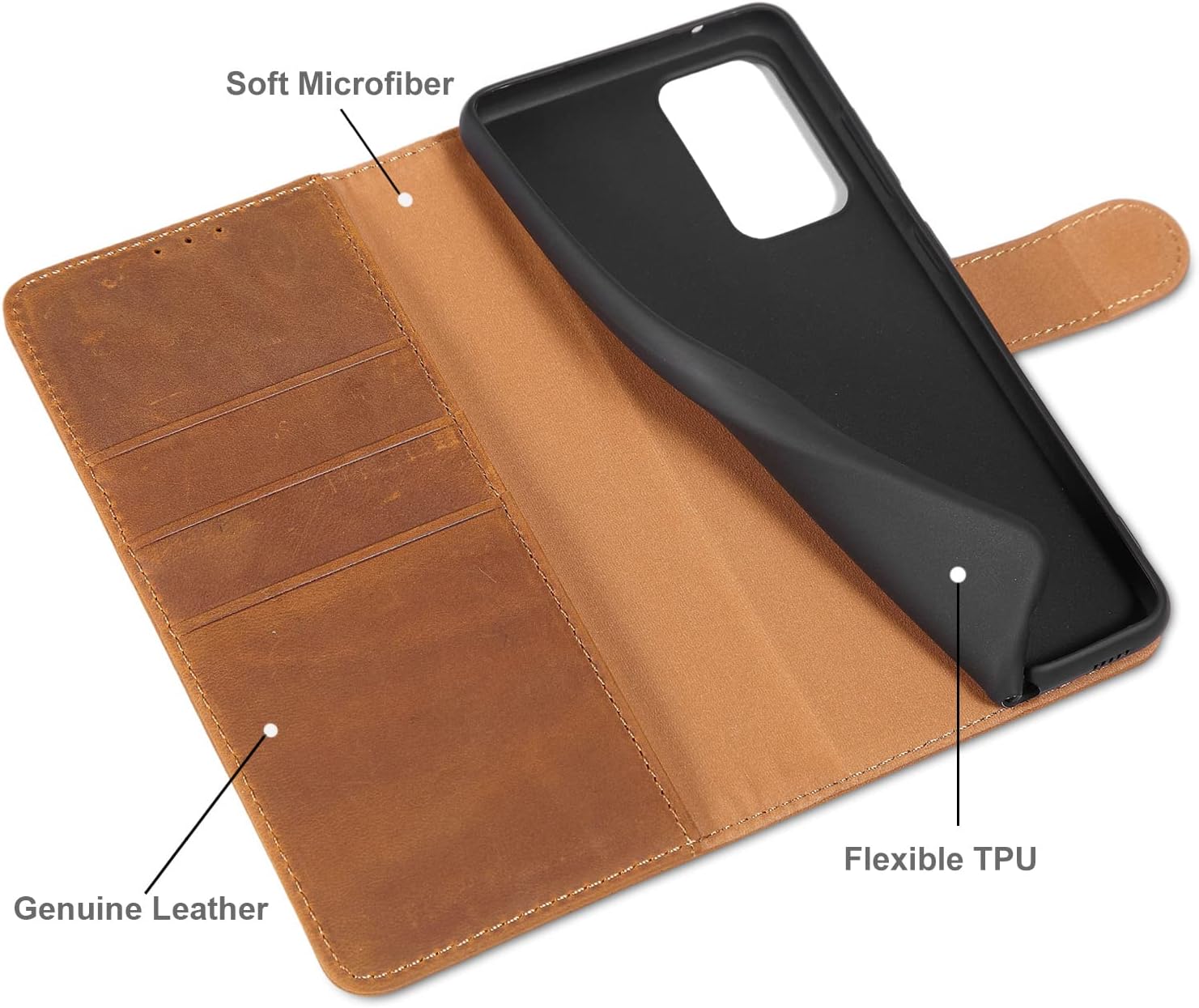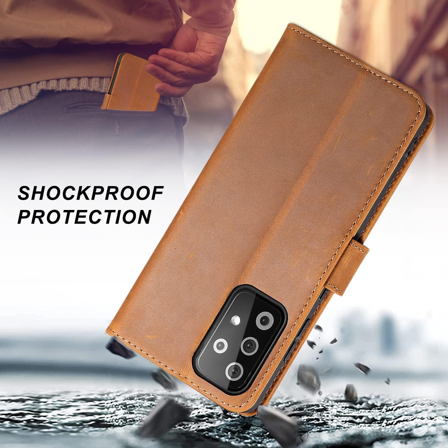 - MATERIAL: Die Samsung A52/A52s Ledertasche ist verarbeitet aus hochwertigem und langlebigem Rindsleder. Das Leder wird angenehmer und weicher geworden durch den Gebrauch. Die Inner-Halterung ist aus weichem TPU-Material gefertigt, bietet maximal Schutz