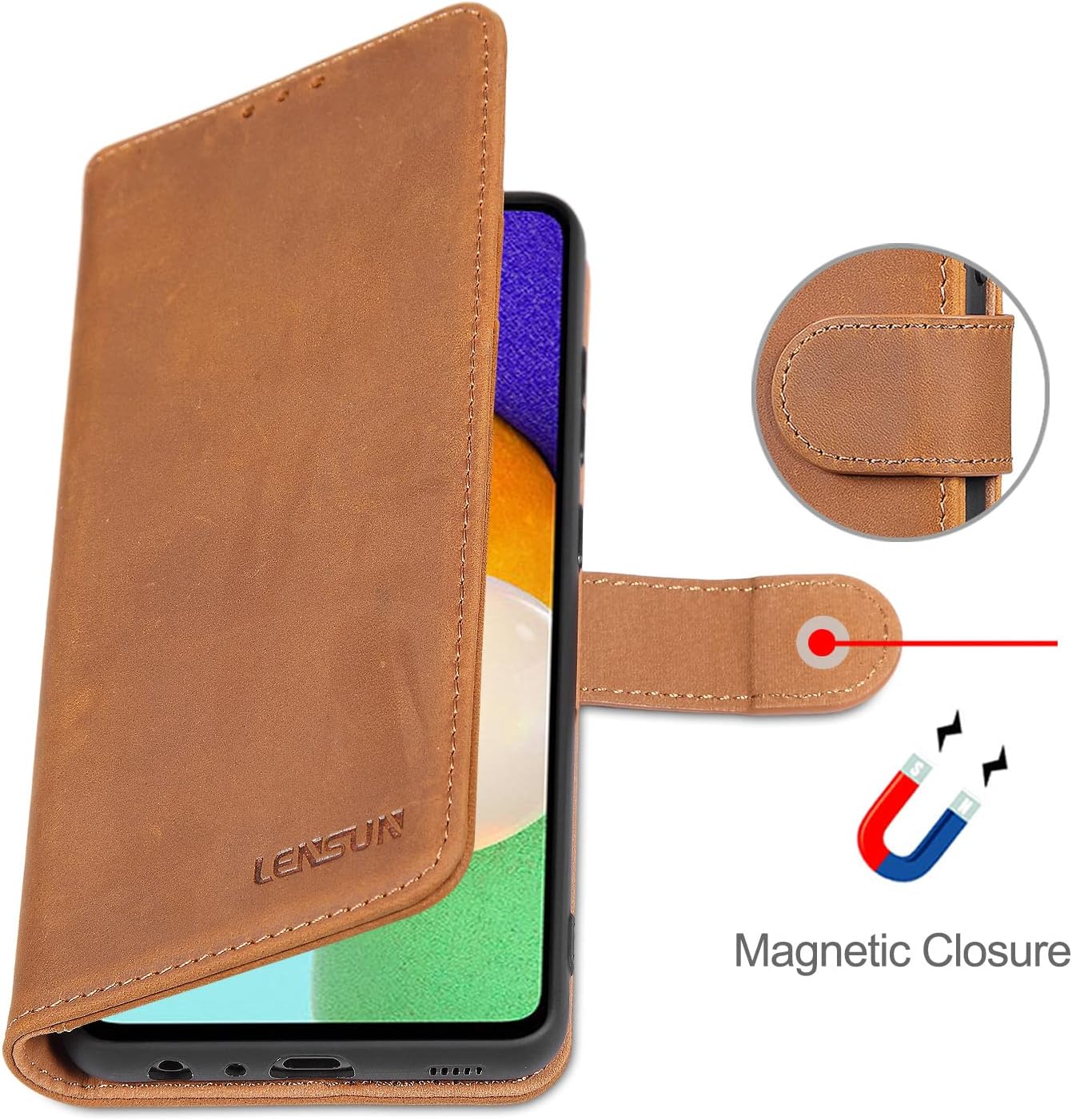 - KOMPATIBILITÄT: Diese LENSUN Klapphülle ist nur kompatibel mit Samsung Galaxy A52 4G/5G und A52s 5G(6,5 Zoll). Alle Position für die Knöpfe und Anschlüsse des Handys sind exakt platziert. Dadurch sind sie alle gut und leichtgängig zu bedienen.