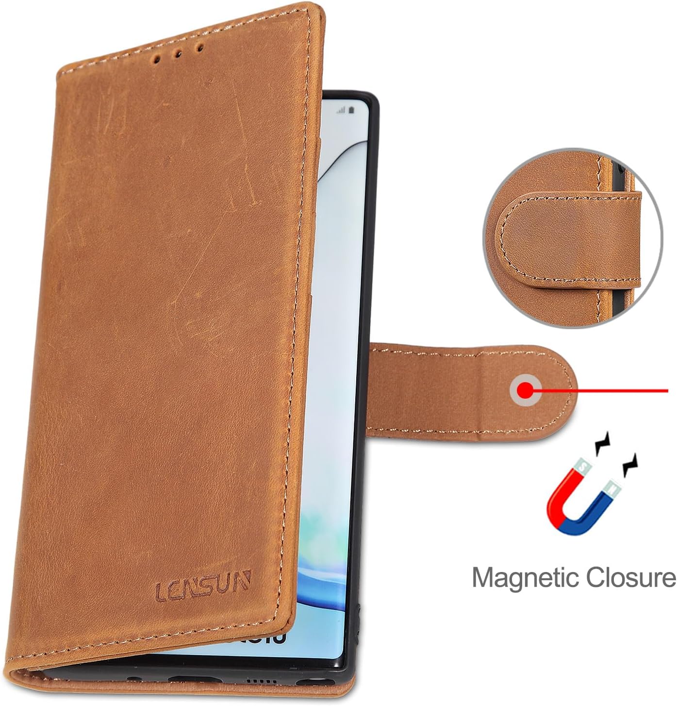 - KOMPATIBILITÄT: Diese LENSUN Klapphülle ist nur kompatibel mit Samsung Galaxy Note 10(6,3 Zoll). Alle Position für die Knöpfe und Anschlüsse des Handys sind exakt platziert. Dadurch sind sie alle gut und leichtgängig zu bedienen.