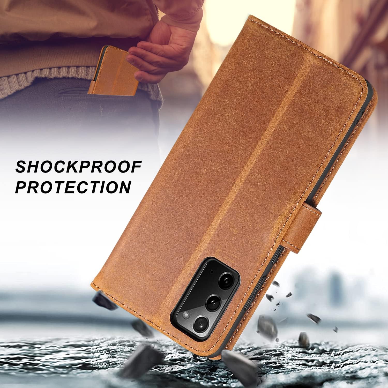 - MATERIAL: Die Samsung Note 20 Ultra Ledertasche ist verarbeitet aus hochwertigem und langlebigem Rindsleder. Das Leder wird angenehmer und weicher geworden durch den Gebrauch. Die Inner-Halterung ist aus weichem TPU-Material gefertigt, bietet maximal