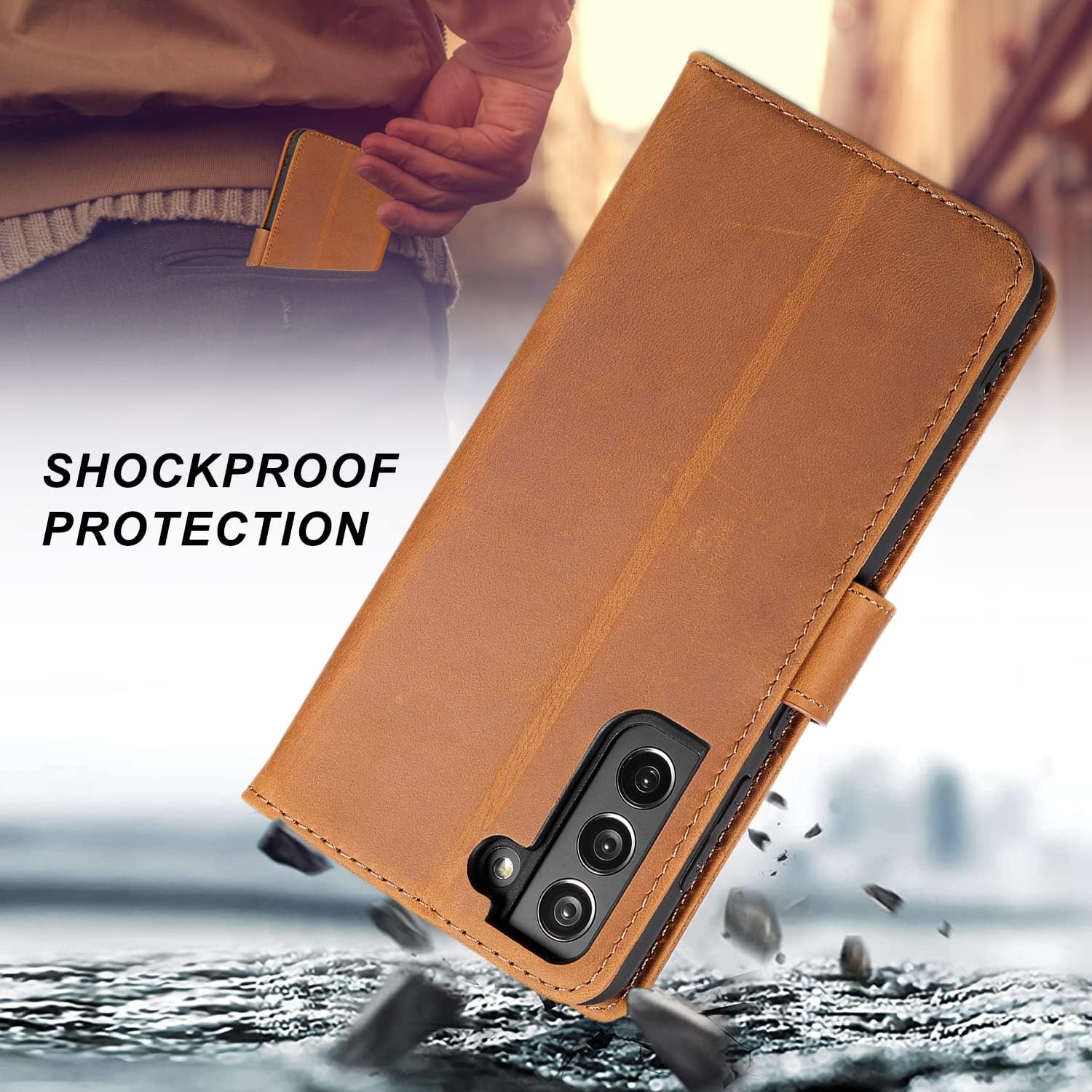 - MATERIAL: Die Samsung S21 FE Ledertasche ist verarbeitet aus hochwertigem und langlebigem Rindsleder. Das Leder wird angenehmer und weicher geworden durch den Gebrauch. Die Inner-Halterung ist aus weichem TPU-Material gefertigt, bietet maximal Schutz und
