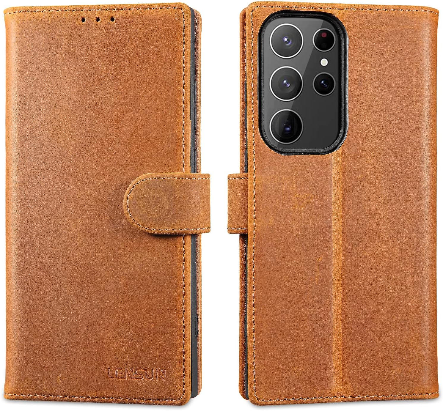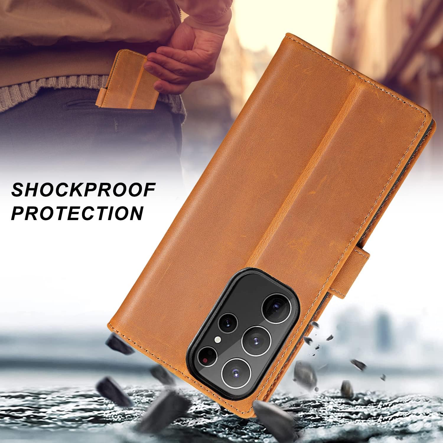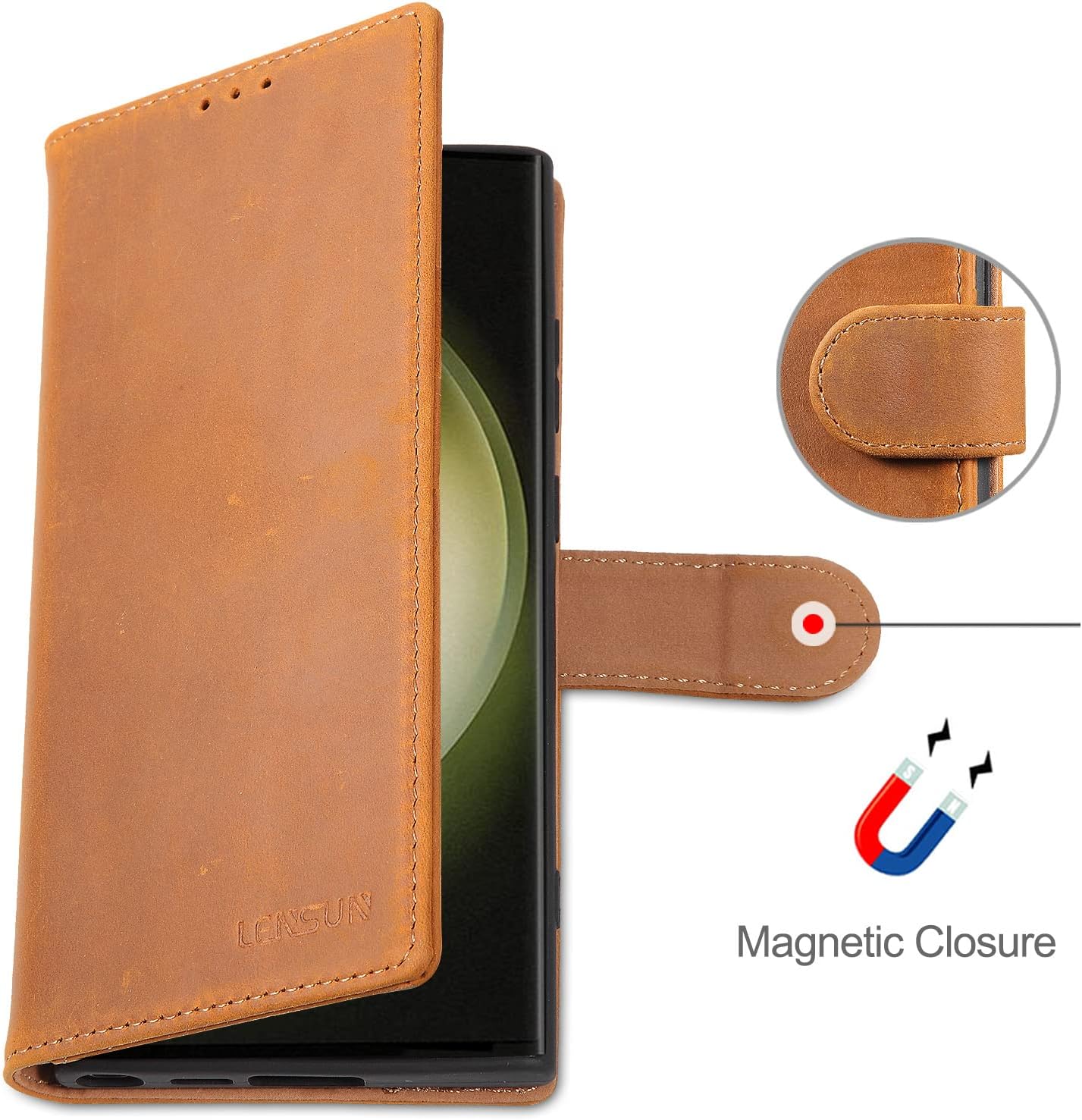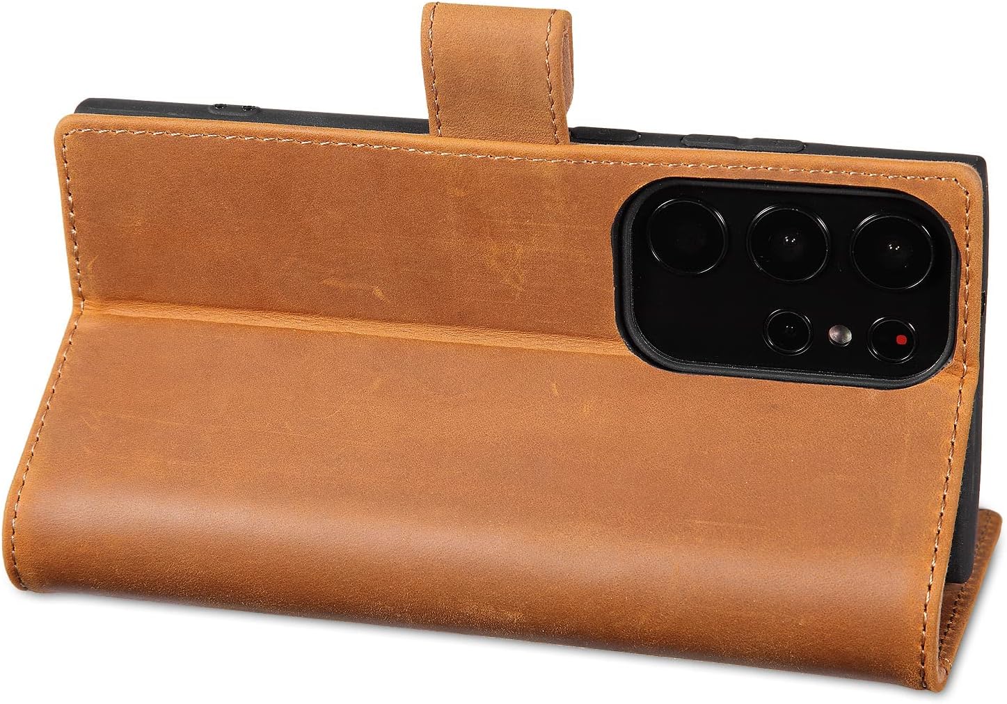 - MATERIAL: Die Samsung S23 Ultra Ledertasche ist verarbeitet aus hochwertigem und langlebigem Rindsleder. Das Leder wird angenehmer und weicher geworden durch den Gebrauch. Die Inner-Halterung ist aus weichem TPU-Material gefertigt, bietet maximal Schutz