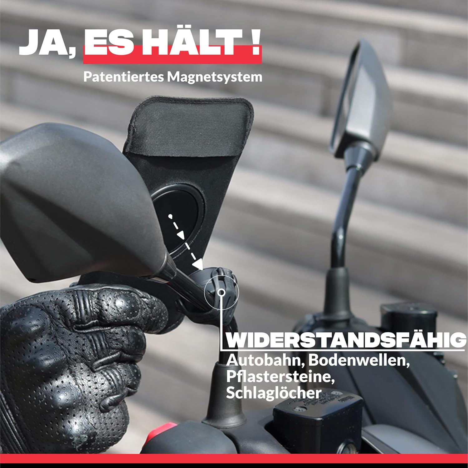 - 🧲 Resistent und vibrationshemmend: Das Shapeheart Magnetsystem trägt bis zu 8 kg! Bürgersteige, Kopfsteinpflaster oder Geschwindigkeitsschwellen, Autobahn (Getestet bis 226 km/h): Die Stütze bewegt sich nicht und absorbiert Vibrationen (Strasse,