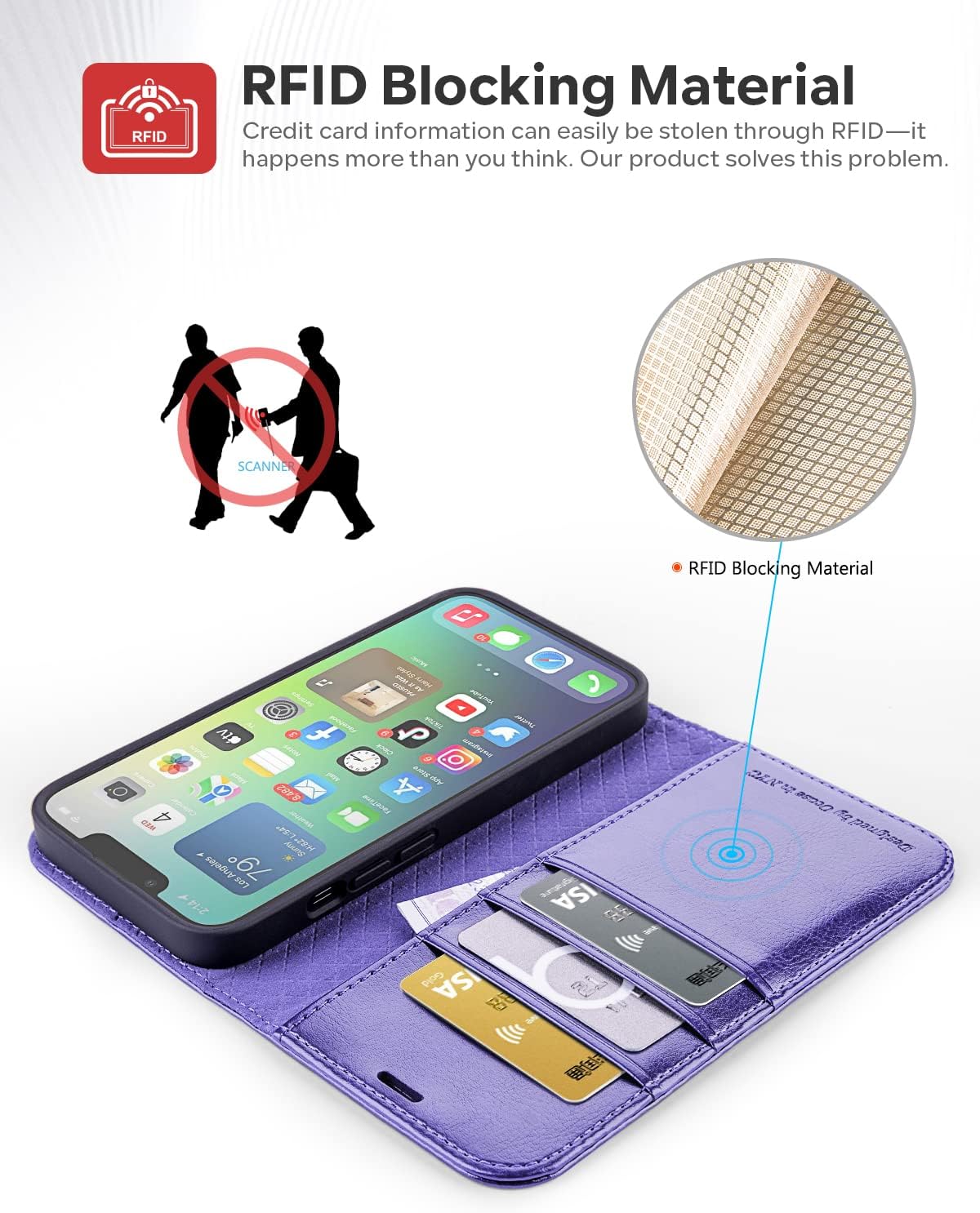 - RFID-Abschirmtechnologie: Ein Reiseliebhaber? Dieser wird Ihnen perfekt passen! Das iPhone 14 Handytasche ist mit einer RFID-Abschirmungstechnologie ausgestattet, die Ihre Karteninformationen mit einem innovativen Blockiermaterial vor