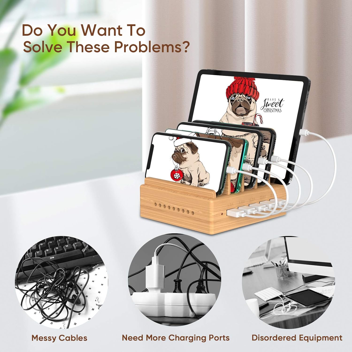- ✅FUNKTIONIERT MIT EINEM GERÄT - Diese USB Ladestation verfügt über 5 Steckplätze und 5 USB Anschlüsse, die bis zu 5 Geräte gleichzeitig halten und laden können. Diese Ladestation funktioniert problemlos mit allen Geräten wie iPhone, iPad und Android-Smartphones, Tablets, Kameras, eReadern, Lautsprechern und mehr.