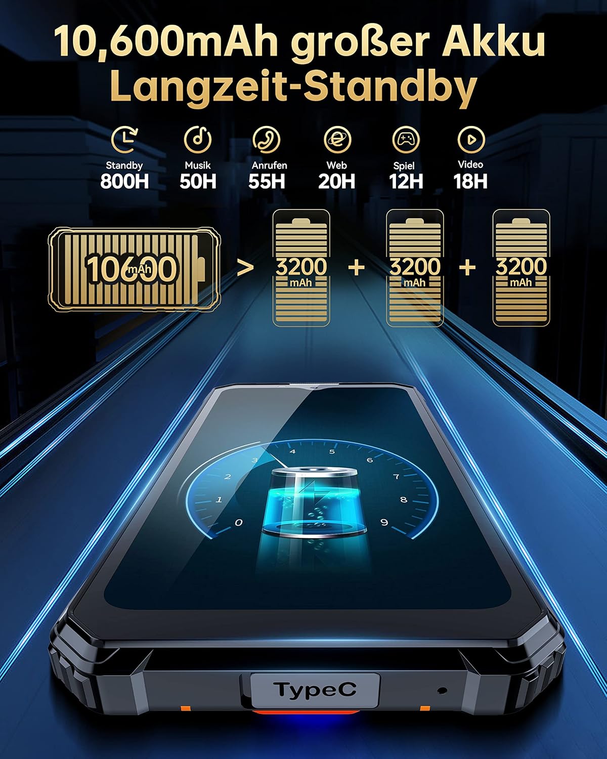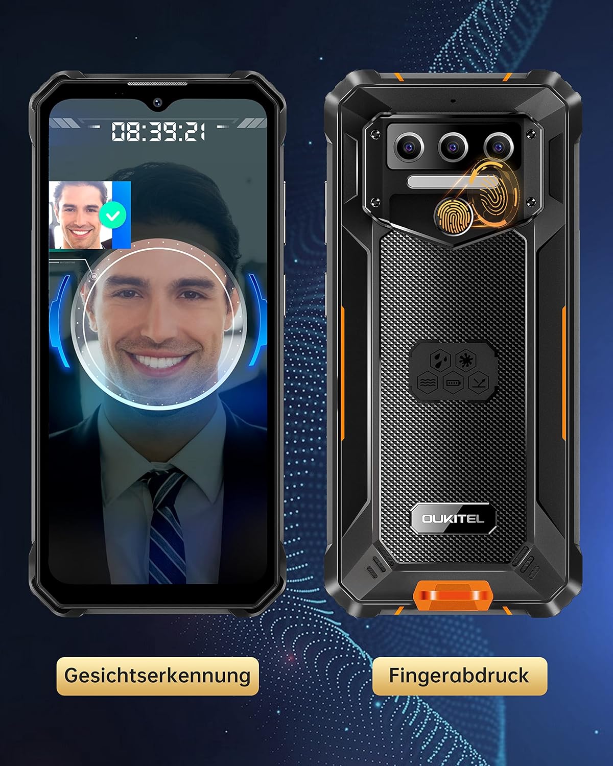 - 6,517" HD+ Display, 13MP + 5MP Kamera Das OUKIT WP23 Outdoor Phone verfügt über ein 6,517" HD+ Display für ein echtes und komfortables Seherlebnis. Der äussere Bildschirm besteht aus Corning Gorilla-Glas, das sehr widerstandsfähig gegen Stösse,