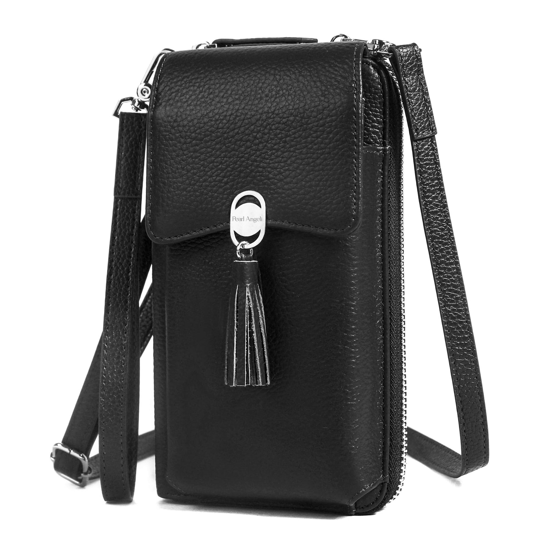 PRODUKTBESCHREIBUNGEN Pearl Angeli Damen Umhängetasche Kleine weiche Handtasche aus echtem Leder für Mädchen und Frauen Kleine Lederhandtasche Eigenschaften: Material: hochwertiges weiches Echtleder Farbe: Schwarz, Braun (Orange), Rot, Weinrot, Grau, Lila Grösse: 11,4 * 5 * 19,5 cm Gewicht: 320 g Abteilung: Damen Stil: Casual Style Eigenschaften: - 10 Kartenfächer, 1 Fotofenster, 5 Geldscheinfächer, 1 Handytasche mit Druckknopfverschluss, 1 Münzfach mit Reissverschluss auf der Rückseite. Eigenschaften und Vorteile: 1. 1 x Schutzhülle für Handy und Geldbörse. (1) Als Handyhülle. Grösse der Vordertasche des Telefons: 16,2 x 9,1 x 2 cm, kann Handys bis zu 6,5 Zoll mit einem schlanken Gehäuse aufnehmen. Solange Ihr Telefon klein ist und diese Grösse unabhängig vom Telefontyp ist. (2) Wie eine Brieftasche. 2 offene Bargeldfächer, 6 Kreditkartenfächer, 1 Münzfach mit Reissverschluss 2. Klassisches und einfaches Design, kompakt und leicht. Jeder macht es zu einer zeitlosen Wahl für den täglichen Gebrauch. Ideal für Schule, Reisen oder andere tägliche Anlässe. Eigenschaften: 1. Die Umhängetasche hat einen abnehmbaren Schultergurt (Schulter) und einen Gurt (Handgelenk). 2. Die Brieftasche ist schön und multifunktional mit vielen praktischen Fächern. 3. Kann Bargeld, Kreditkarten, Ausweise, Handy und andere wichtige Dinge aufnehmen. 4. Die Tasche kann ein perfektes Geschenk für Frauen, Frauen und Mädchen sein. Lieferumfang: 1 x abnehmbarer Gurt (Schulter), 1 x abnehmbare Hand (Handgelenk), 1 x Umhängetasche für Damen und Mädchen Mehr