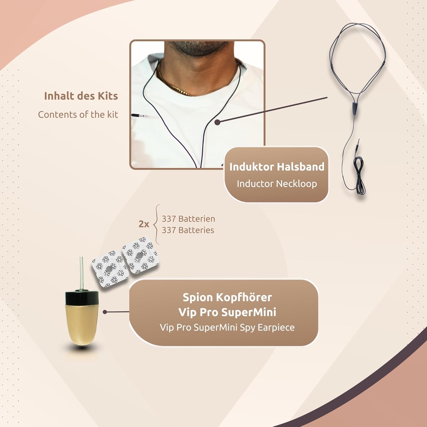 - 🔋【 Grosse Autonomie 】Die Akkulaufzeit beträgt ca. 4 Stunden, abhängig von der Lautstärke des Telefonats oder der Aufnahme. 2 Batterien 337 sind im Lieferumfang des Vip Pro SuperMini Earpiece enthalten.