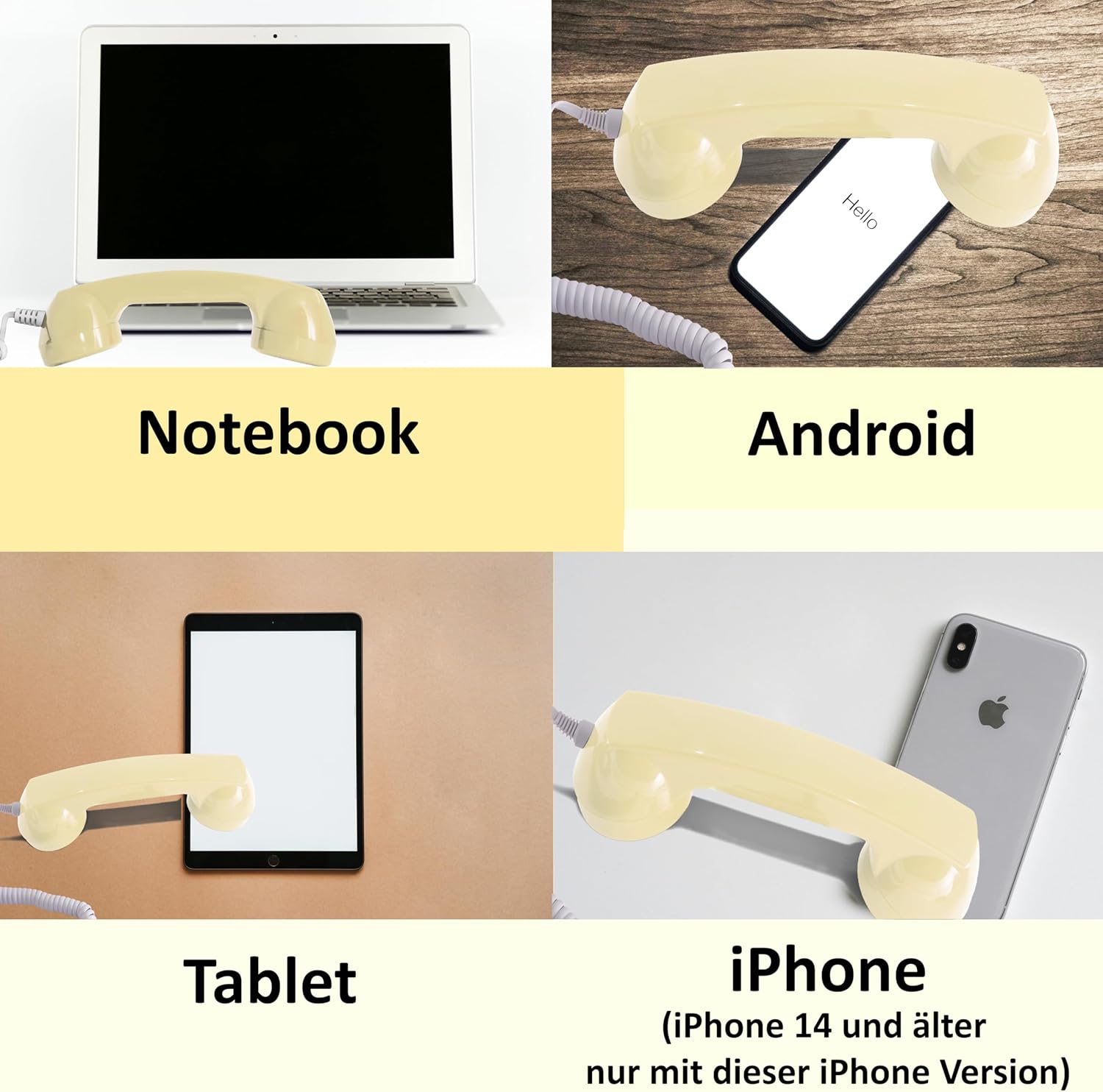 - 📞 RETRO PUR: Heute mit dem Handy telefonieren wie Opi und Omi. Der ansteckbare Telefonhörer machts möglich!