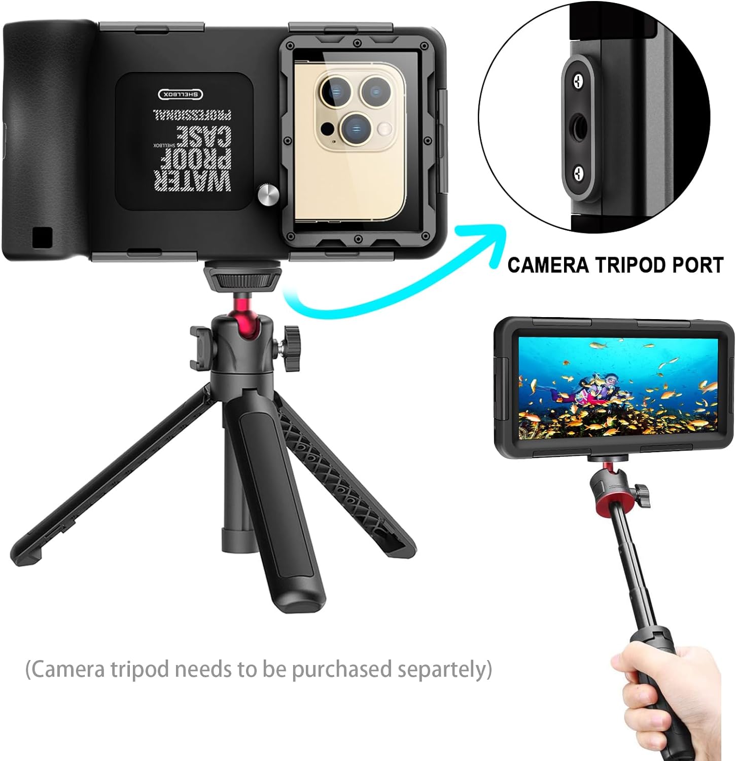 - Schnelleinrichtung: Setzen Sie Ihr Telefon ein und schliessen Sie den Koffer. Alles was Sie tun müssen,ist die Kamera oder das Video einzuschalten, bevor Sie unter Wasser sind. Das wasserdichte Gehäuse hat ein "Shutter" -Design. Um alle Details Ihres